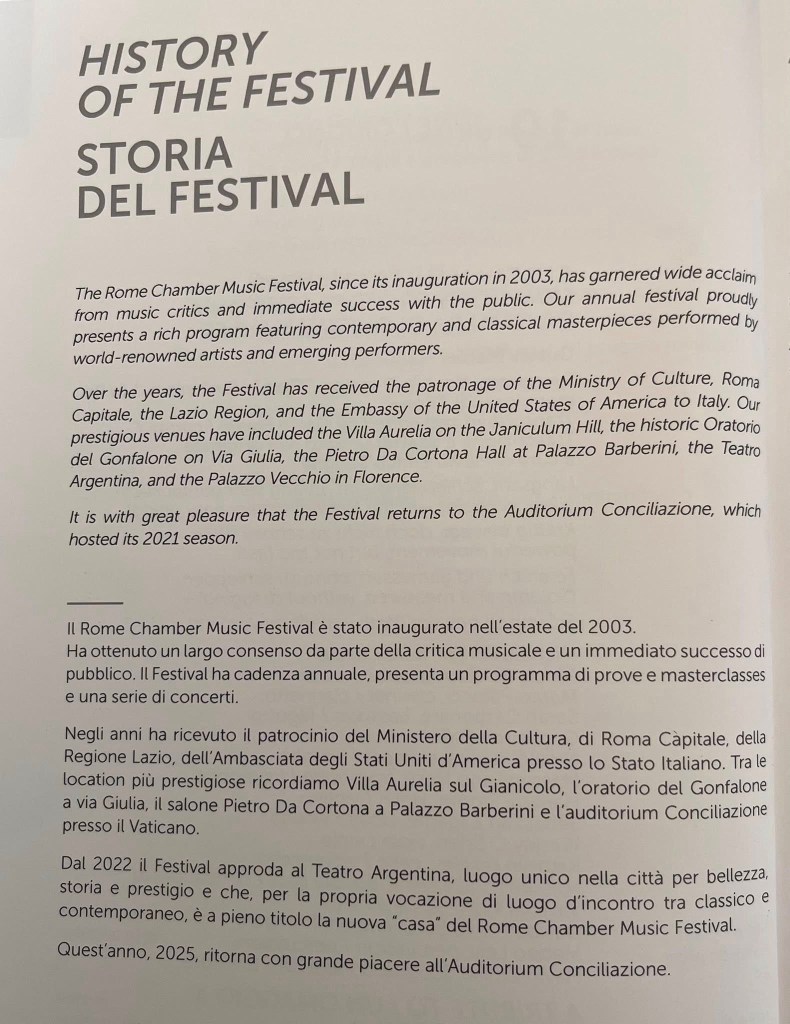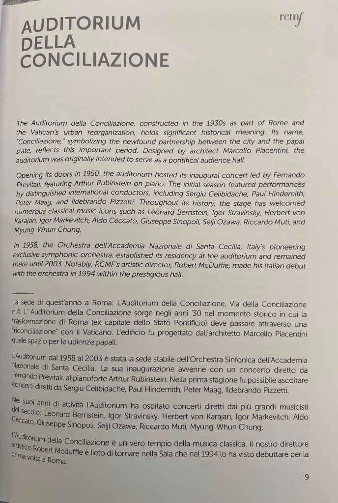 Returning this year to the Auditorium of Via delle Conciliazione where the genial Robert McDuffie had made his Rome concerto debut in 1994. A hall in the shadow of St Peter’s with the opening programme being a special tribute for the 2025 Jubilee.