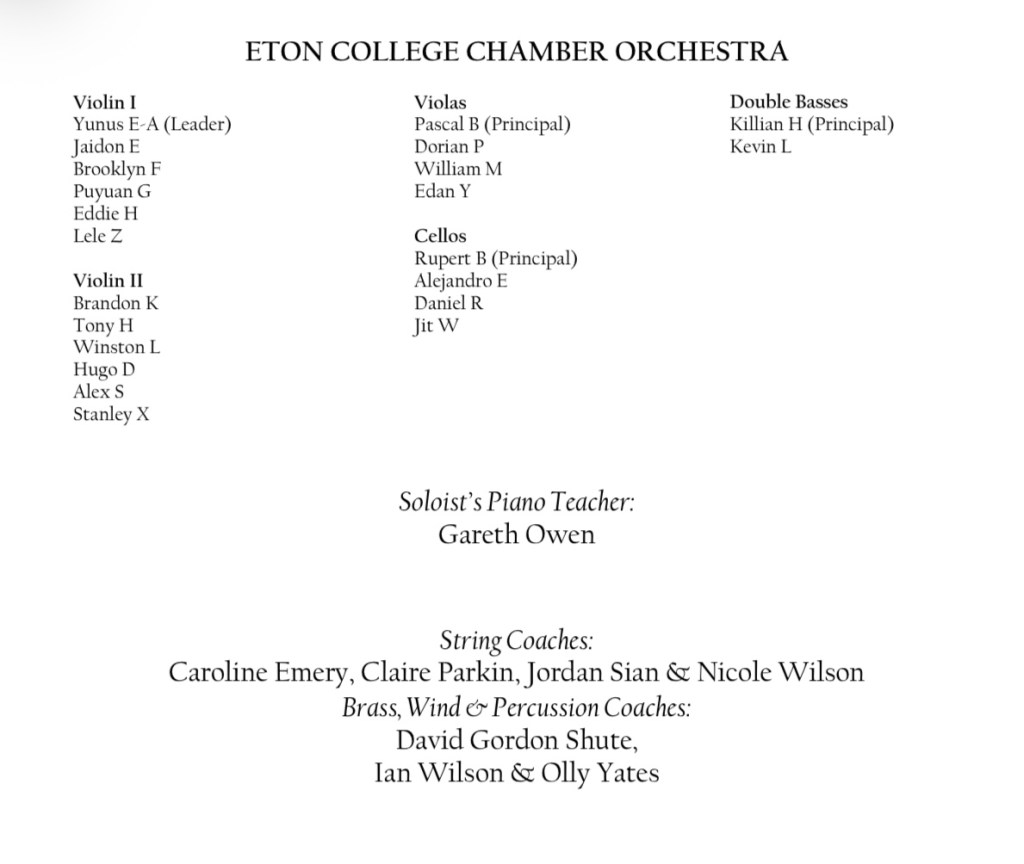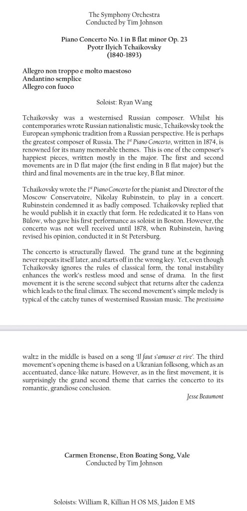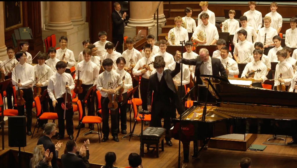 A triumphant Tchaikowsky and heart rending Liszt closes five years of close bonds and friendships as the world awaits the arrival at only 17 of a star shining brightly. A brilliant performance of great conviction from the very opening chords played like a great eagle hovering over the keys ready to devour them. Octaves played with the weight and dynamic drive that had Beecham declare to Horowitz that he should be ashamed at putting his orchestra into the shade! But it was the encore of Liszt Liebestraum that revealed the unique personality and poetic sensibility of this young man about to venture into the world,having been sustained for his past most formative five years, by his friends and superb trainers at Eton.