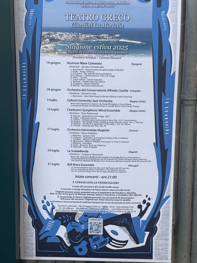 The birds that surround us, like the frogs too, are much happier than the one’s that Ravel depicts. Ravel’s ‘Oiseaux tristes’ have never sounded so yearningly expressive as the sounds that Kasparas produced on this vintage instrument glowing with a fluidity and gleaming delicacy. Tenor counterpoints that appeared within this lugubrious scene just added to the poignancy and languid beauty of such a sad scene. Luxuriant gentle waves of ‘Une barque sur l’océan’ can soon turn into violence as the Islanders here well know. On many occasions with rough seas the port of Forio ( where La Mortella is based ) is not accessible by sea. Within the depths of these lapping waves a melody is heard singing out with glowing reassuring warmth. A transcendental command of balance and brilliance from Kasparas brought not only a crystal clear melodic line but also wrapped it in luxuriant harmonic colours that never interrupted the their glowing beauty. Turbulence brought brilliant cascades of notes as the waves became more and more agitated until a magical calm was restored with a mirage of beauty, played with a disarming simplicity of religious fervour. Radiance and beauty restored from Kasparas’s delicate fingers, barely caressing the keys with the whispered wafts of the final sprays of water spread over the upper most register of the piano.