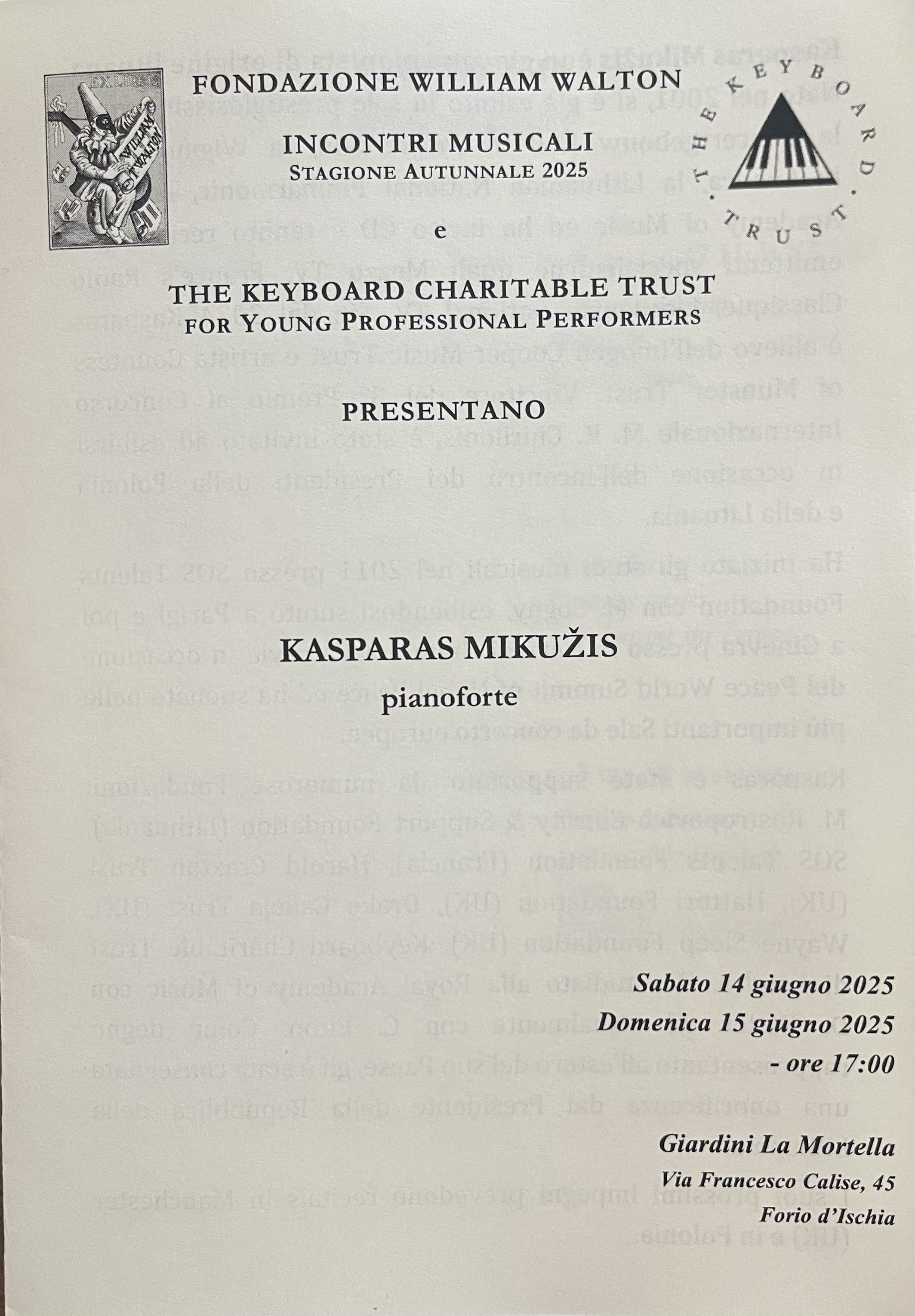 By coincidence Kasparas had played in a masterclass in Pinerolo with Benedetto Lupo a short while before.