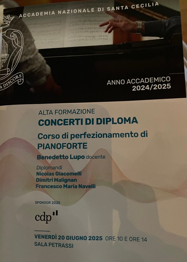 Here in Rome are a remarkable group of pianists, united in every sense under the influence of Benedetto Lupo …………….many winners of important International Piano Competitions …..but realise that winning is an enviable achievement that may lead to momentary fame and even fortune, but is not necessarily the door to delving deep into the scores and finding treasures that are there only for the chosen totally dedicated few. The road of a true artist is hard to follow, but one that Benedetto, like the pied piper of ‘Hamelin’, is determined to tread and happy to allow anyone with the same dedication to follow.