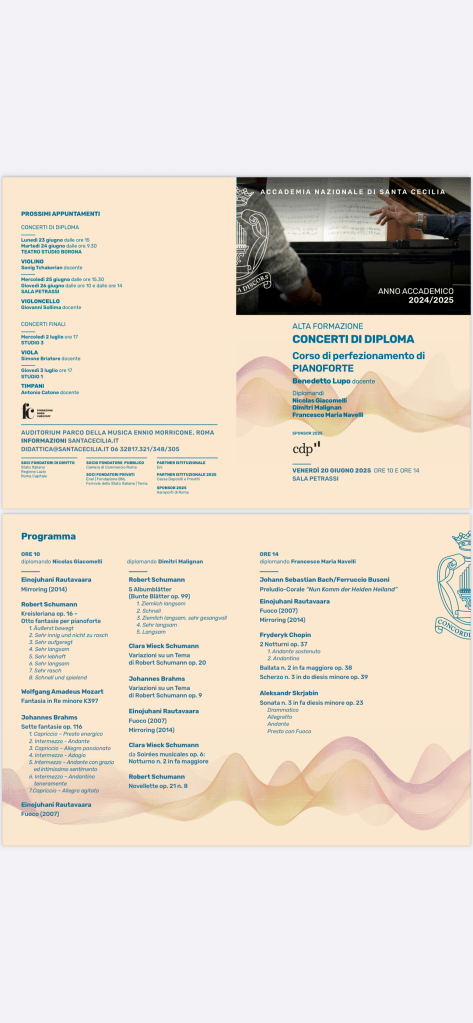 ‘ Eliodoro Sollima was director and teacher at the Conservatorio of Palermo, where I completed my undergraduate studies in piano. He passed away in the year 2000, the same year I was born, and I found it meaningful to include in this programme works by two Sicilian composers who, in a way, have passed the torch from one generation to the next.’