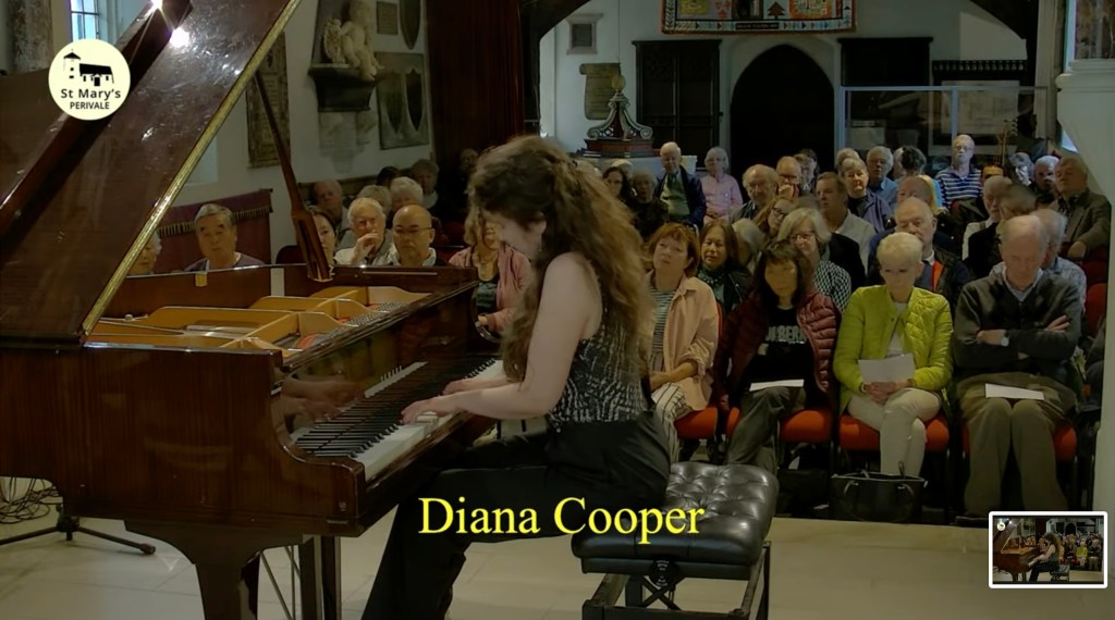 The thirteenth prelude is one of the most beautiful creations of Chopin, similar in may ways to his D flat Nocturne. It is more subdued and less turbulent, where the middle episode is an explosion of exquisite breathtaking beauty. Diana played it with quite extraordinary poise and mastery having opened this group of six preludes with this whispered magic. Ending with the dynamic cadenza of the 18th Prelude, played with dynamic drive and passionate insistence, just as she had the notorious 16th .The fourteenth was a mere breath of wind blowing over the graves that Diana played with remarkable control of the pedal before allowing the fifteenth, the ‘Raindrop’ prelude , to enter with glowing simplicity. Bringing a subtle menace to the central episode, with a masterly build up of sonority without ever allowing the sound to become hard or brittle. It was the same fullness without hardness that she brought to the beautiful A flat prelude, that with fluidity and simplicity, she was able to transform from a simple prelude into a tone poem of vibrant beauty.