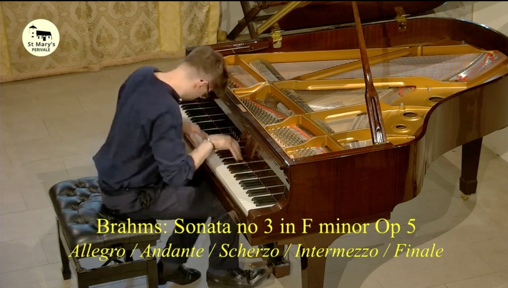 A recital in the sweltering tropics of Perivale today brought some impeccable playing of radiance and beauty but above all of masterly intelligence and extraordinary control. With a ‘First’ from Oxford safely under his belt he can now concentrate on his solo piano career. Fresh from winning the Dudley Competition he now presented Brahms marathon F minor Sonata . A symphony for piano which needs supreme intelligence and poetic understanding, but above all an orchestral ability to stand back and allow the music to unfold with rock like precision and control.