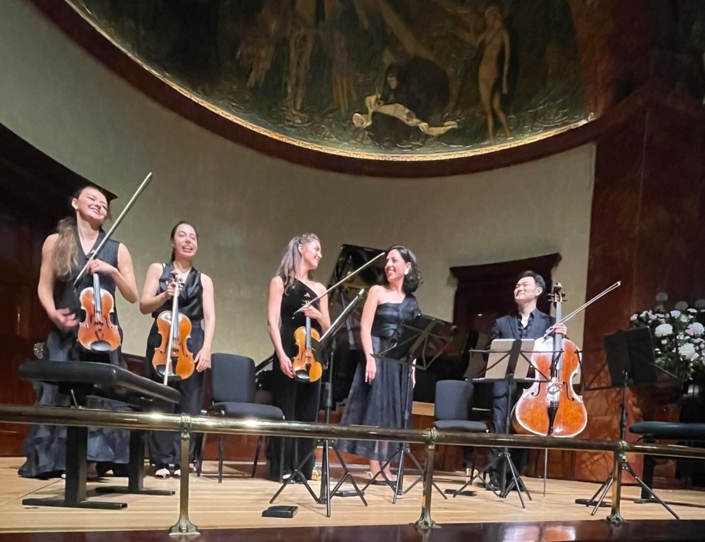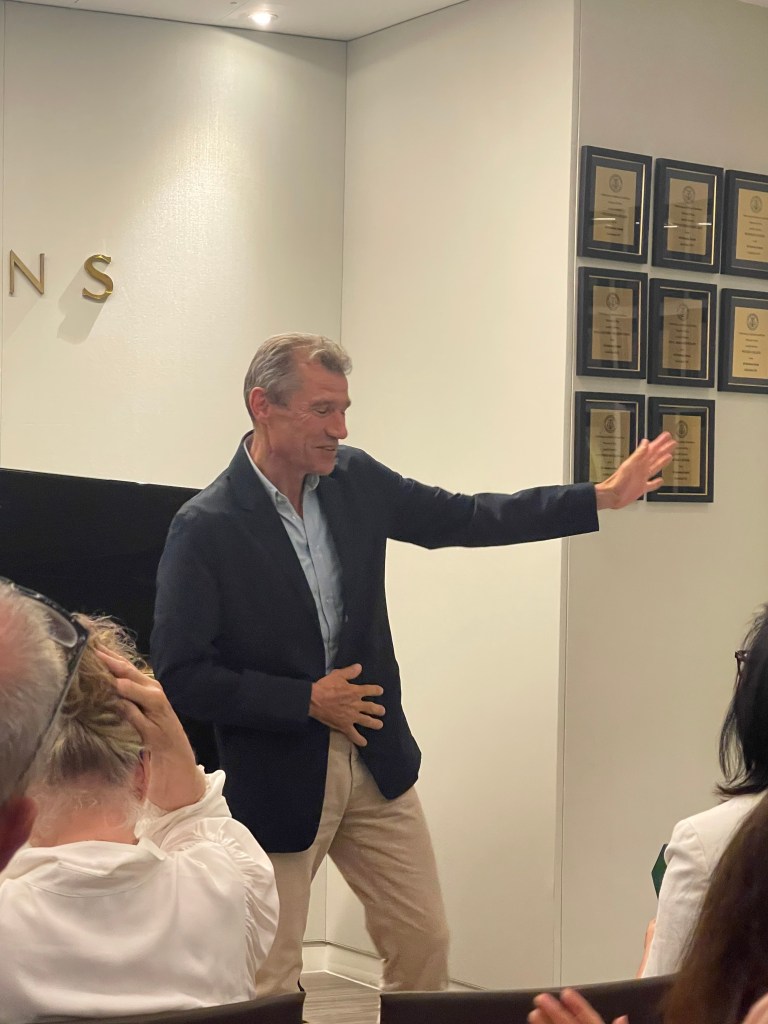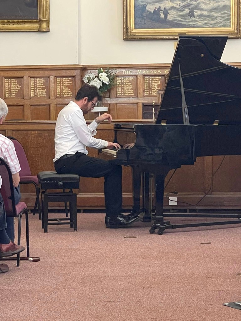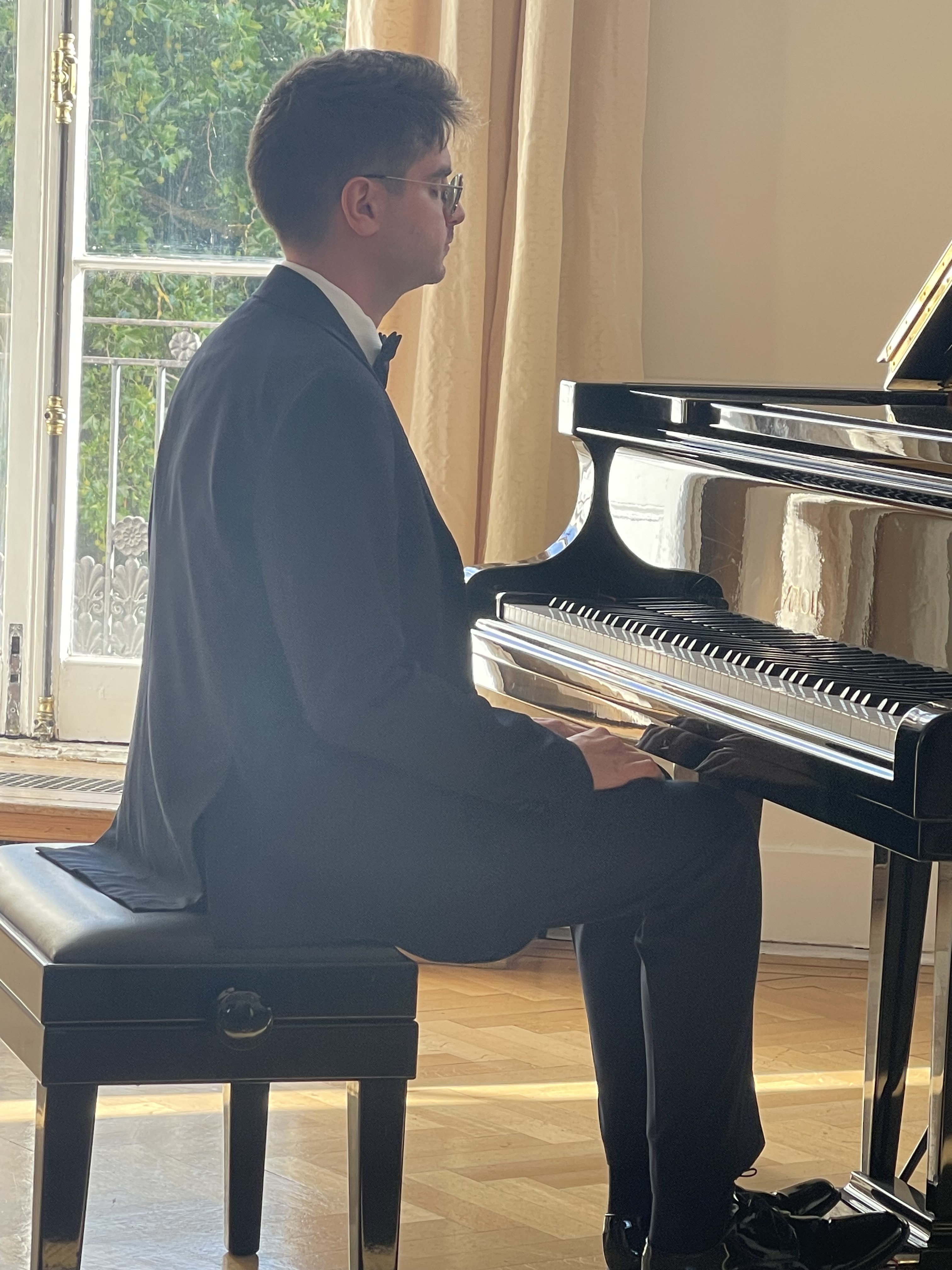 Schumann Fantasy was the second masterwork on the programme and is together with the Liszt Sonata the pinnacle of the romantic repertoire with Schumann and Liszt dedicating these works to each other. The opening was played with passion but also a mature control and a sense of line that was so clearly defined throughout. The ending ,a quote from Beethoven ,’To the distant beloved’, was played with disarming simplicity and remarkable tonal control. A beauty also in the central episode where the melodic line was allowed to float so magically over the hovering ever changing harmonies. The second movement was allowed to flow so naturally and Schumann’s dotted rhythms were shaped with poetic understanding where counterpoints glistened and glowed within this bubbling outpouring of radiance and beauty. There were some very interesting harmonies in the central melodic episode of great originality that Sandro highlighted with subtle poetic understanding. A beautiful transition from the virtuosity ending of this movement, where not only did Sandro play with enviable clarity but also giving a great sense of shape to a notoriously difficult coda. Timing the opening of the final movement to perfection and creating an atmosphere of the love and beauty that the composer wanted to share with his beloved Clara. A sense of fantasy and improvisation but also keeping a flowing tempo sustained by deep bass notes . A glorious luminosity to the two declamations of romantic fervour, never sacrificing absolute rhythmic precision as is rarely the case. Ravishing beauty to the final mellifluous outpouring as it built to a gentle climax only to die away to three magically placed final chords.
