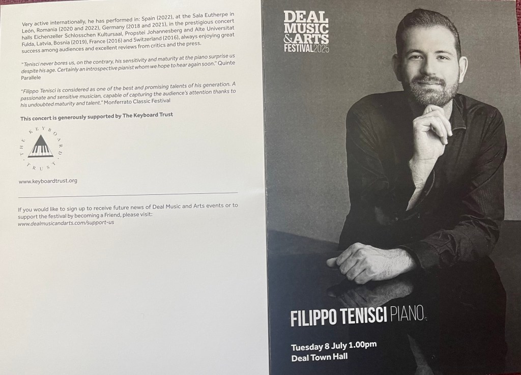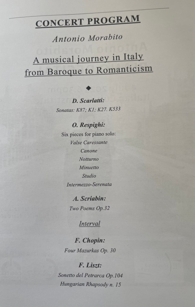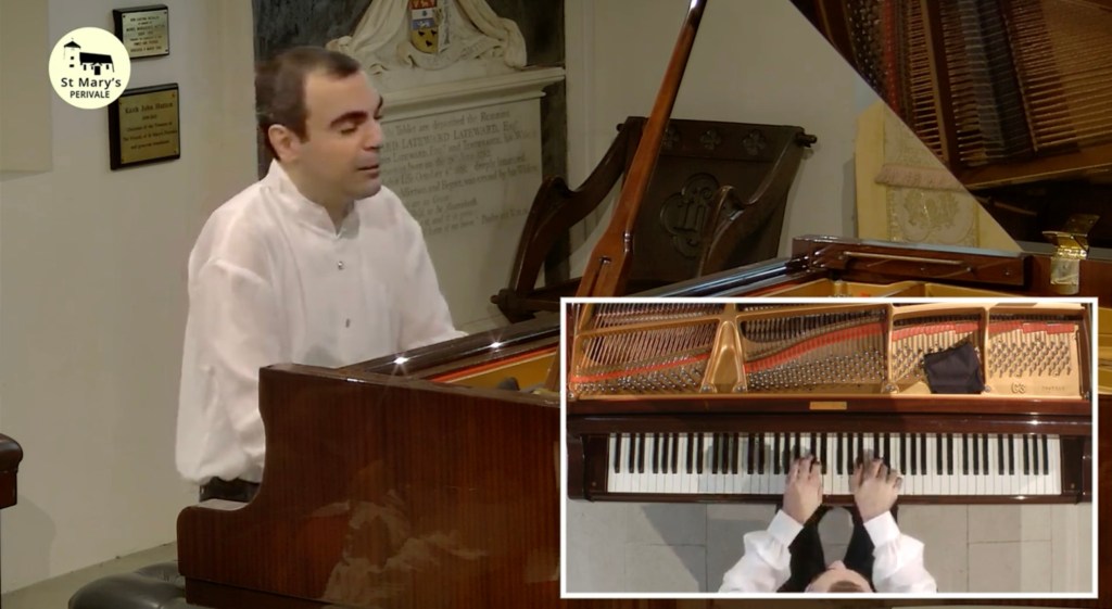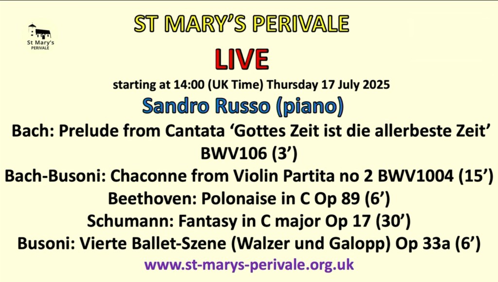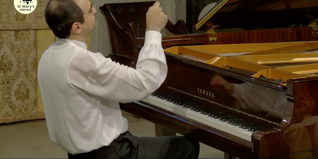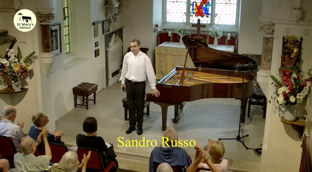 Sandro Russo played it with a chiselled beauty of nobility and aristocratic restraint.There were some moments of very expressive almost romantic playing, but always in style and with the continual forward movement of the undercurrent that carries us from the opening Chaconne theme to the triumphantly exhilarating final declamation. Playing of great precision and rhythmic drive with a very clear sense of line and an overall architectural shape. There was a radiant beauty to the tenor line that is given the spotlight after great feats of pianistic arpeggiandi spread over the entire keyboard. This was a remarkable performance of absolute clarity and simplicity but above all of mastery and nobility.
