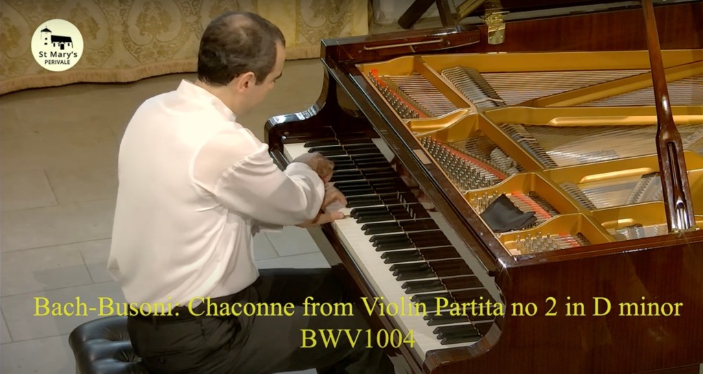 The Busoni reworking of the Bach Chaconne is a recreation of Bach’s genial masterpiece. Not only is there a piano roll performance of Busoni himself playing it, but I first fell in love with it when, as a teenager, I heard the recording of Arturo Benedetti Michelangeli. It ignited a passion in me and despite my teacher ,Sidney Harrison, trying to discourage me I learnt it in a week, and it was the work that earned me a place at The Royal Academy !