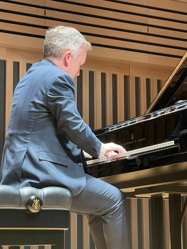 Hot on the heels of Murray McLachlan, Leon McCawley bestrode the Stoller Hall like a Colossus. Playing of such intelligence and integrity and a pianist who could bring Beethoven’s ill fated Andante favori into the spotlight with an extraordinary range of sounds.A classical discipline that was filled with music making of such character never allowing Beethoven’s dynamic drive to loose its momentum or the constant undercurrent of energy or to be distracted by fussy detail. This was playing of refined artistry combined with a scrupulous attention to the indications of the composer. It was strong vibrant playing with moments of Beethoven’s constant changes of character played with a mastery that brought the music vividly to life .