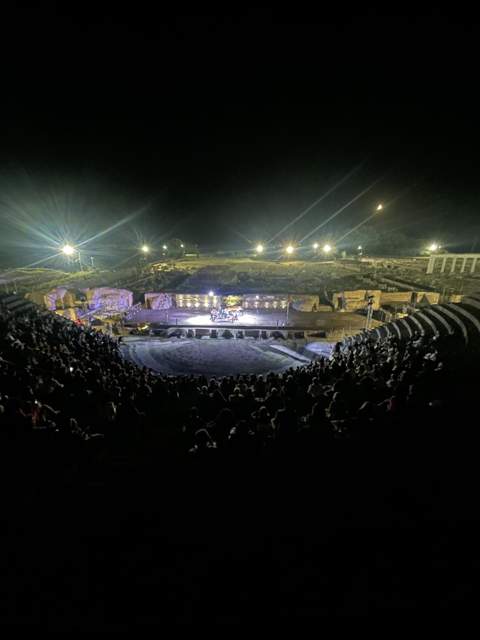 the sindaco of Minturno presenting the concert and more music in this magic Teatro Romanocentre Natalie Gabrielli Carroccia together with her husband bringing magic to this sacred land