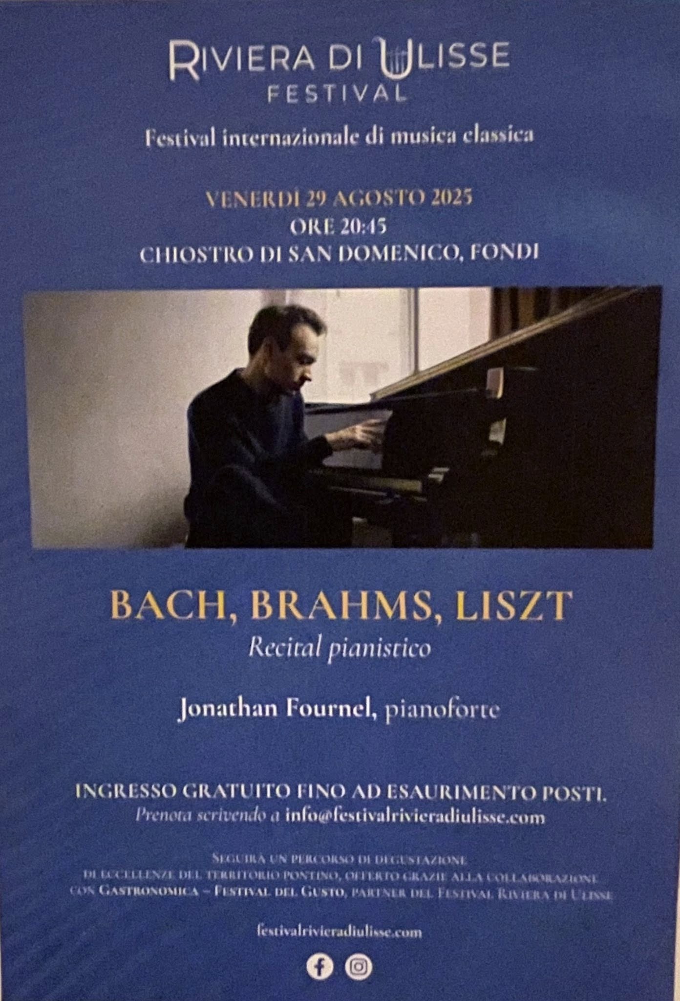 Artistic director and master pianist , friend and colleague of the artists. With Julian Kainrath https://christopheraxworthymusiccommentary.com/2025/08/28/julian-kainrath-rides-high-on-the-wings-of-ulisse-some-enchanted-evening/gastronomic feast after the concerts in this land kissed by the Godsthe proof of the pudding is certainly in the eating behind the scene preparations gastronomic delights to enhance the intoxicating senses of Bach,Brahms and Liszt our hosts for the gastronomic treats Luigi Carroccia ,artistic director with his wife Natalie, seen here applauding his friend and colleague,Jonathan, before his own concert tonight of the two Chopin Piano concerti in the Teatro Romano in Minturno https://christopheraxworthymusiccommentary.com/2024/05/04/luigi-carroccia-the-poet-of-the-piano-chopin-concerti-op-11-and-21-in-rome-orchestra-delle-cento-citta-directed-by-luigi-piovano/Emil Gilels was born in Odessa. He did not come from a musical family: his father worked as a clerk in the sugar refinery and his mother looked after the large family. At the age of five and a half he was taken to Yakov Tkach, a famous piano pedagogue in Odessa. He completed his first period of studies with unprecedented ease. In 1929 aged twelve, he gave his first public concert. In 1930 he was accepted to the conservatory in Odessa into the class of Berta Reingbald. Her main goal was his participation in the First All-Union Competition of Performers which was announced to take place in 1933 in Moscow. Gilels’ playing created a sensation – when he finished his programme the auditorium rose up in tumultuous ovation and even the jury stood to applaud. The question of first prize was not even discussed: in a unanimous decision Gilels was announced the winner. The competition changed Emil’s life – he was suddenly famous throughout the land. Following the competition, Gilels embarked on an extensive concert tour around the USSR. In 1938 Gilels and Flier set off to the Queen Elisabeth Competition. They were expected to uphold the victories of the Soviet violinists, lead by David Oistrakh a year earlier, and to return in triumph. Gilels was awarded the first prize and Flier took the third. Moura Lympany,second and Arturo Benedetti Michelangeli 7th ! The whole musical world began to talk about Emil Gilels. Following the competition he was meant to embark on a lengthy concert tour, including a tour of the USA. These plans were abruptly interrupted by the Second World War. On home soil Gilels became a hero: he received a medal for his achievements, was greeted by a welcome party upon his return and in the Soviet consciousness his name sounded in equal rank with the names of famous explorers, pilots and film stars. Final (29/05/1938) programme : PYOTR TCHAIKOVSKY Concerto n. 1 in B flat minor op. 23 JOHANNES BRAHMS Variations on a Theme by Paganini op. 35 I FELIX MENDELSSOHN Scherzo (A midsummer night’s dream ) RICHARD WAGNER Mort d’Yseult MILY BALAKIREV Islamey FRANZ LISZT Hungarian Rhapsody n. 6 in D flat major JOSEPH JONGEN Toccata Emil Gilels Orchestre Symphonique de l’INR, dir. Franz AndréArthur Rubinstein dedication to Emil Gilels, “from my heart, your old friend Arthur Rubinstein.” 17 January 1960