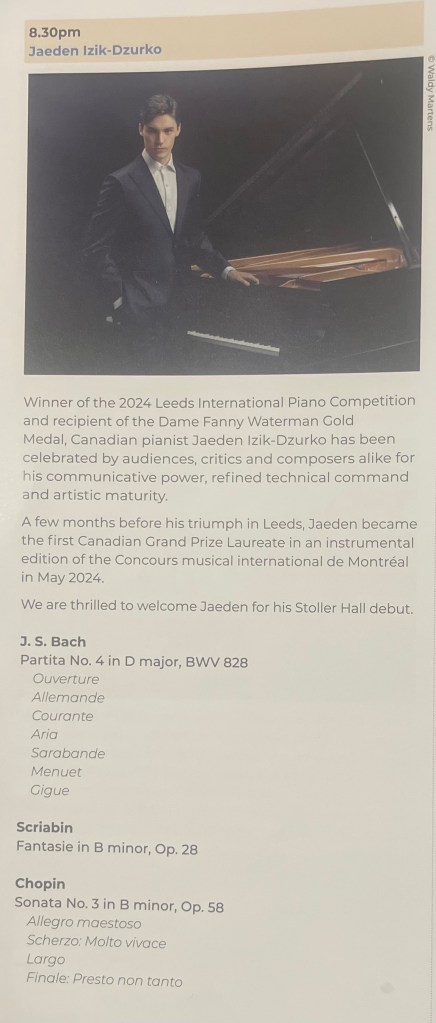 I have heard Jaeden many times since the very first time as Gold medal winner of what turned out to be the last Santander competition. Paloma o’ Shea that very night announced her retirement at the Wigmore Hall where this young Canadian pianist had astonished us with a performance of Rachmaninov’s First Sonata, where his technical mastery and musical intelligence were of astonishing polished perfection. But he was equally at home in the Brahms Quintet with the Casals Quartet ,where his ability to listen and become part of an ensemble showed his extraordinary musicianship.