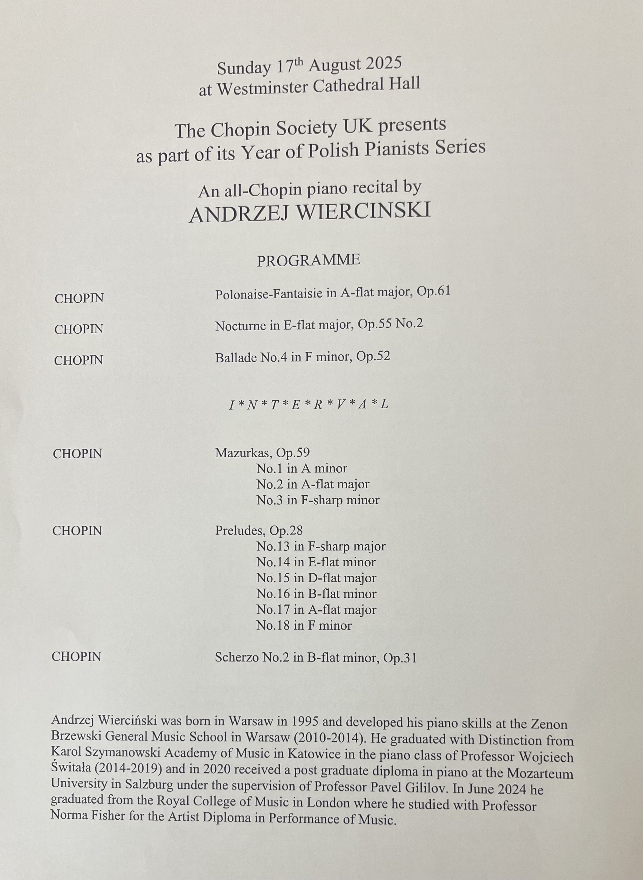 However the performances we heard today from this young Polish musician were a potent mix of emotions that I have rarely heard before, played with such poetic imagination.