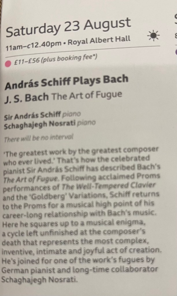 The Art of Fugue or the Art of understatement. Andras Schiff with humility and mastery held us captive in the name of Bach. Five thousand people listening with baited breath to ‘the greatest work of the greatest composer who ever lived’ .