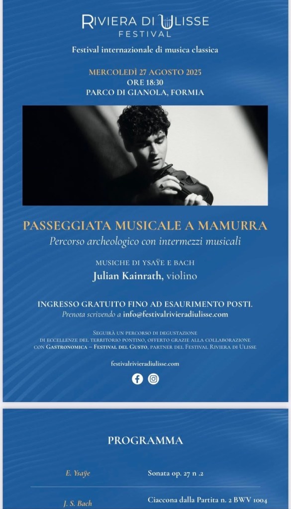 Whilst his father Peter Paul Kainrath inaugurated today the 65th Busoni Competition in Bolzano his son Julian enchants the Riviera di Ulisse with Bach’s greatest work for solo violin .https://christopheraxworthymusiccommentary.com/2023/08/13/all-the-fun-of-the-circus-the-busoni-competition/