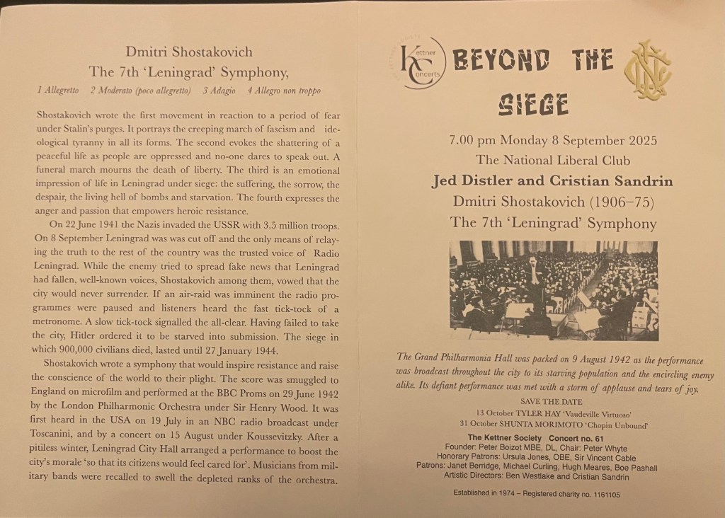 The National Liberal Club taken by siege with Jed Distler and Cristian Sandrin as they recount the harrowing tale of Shostakovich’s Leningrad Symphony.