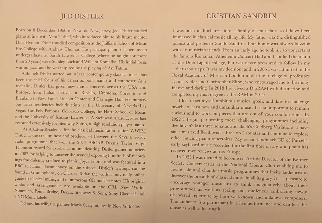 Riding high on wings of song as Jed said ‘ an emotional generosity playing dangerously and always in the present’. Quite simply the best young pianist he has heard since arriving in London almost a month ago .