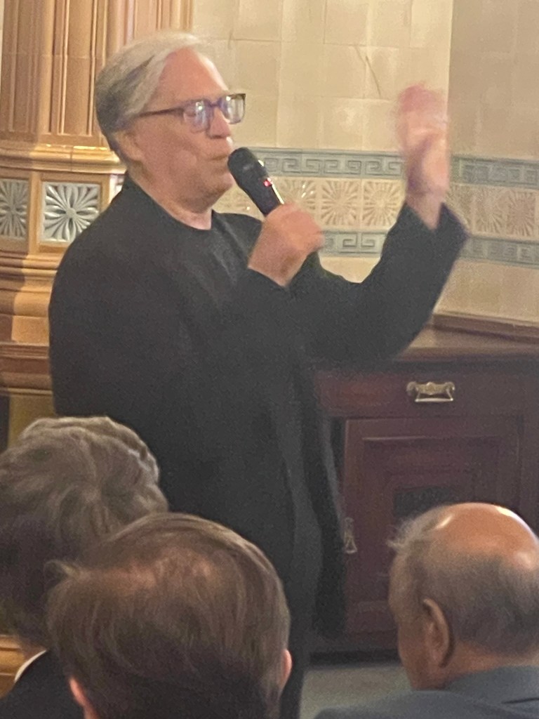His two pieces that were on today’s programme are part of a new CD of his own composition to be imminently released. His words revealed a very deep emotional understanding and poetic reasoning as was mirrored by his striking multi coloured shirt! His two short piano works were followed by a third as a much requested encore. They revealed a music language of mellifluous beauty and ingenious pianistic understanding as the clarity of his playing showed also the direct emotional message that his music carries,with playing of glowing beauty. A sense of balance but above all a chiselled mellifluous beauty of his own voice speaking with such conviction and authority.