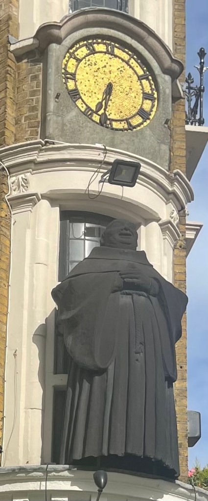 St Bride’s Church is a Church of England in Fleet Street dedicated to Saint Bridget perhaps as early as the 6th century, the building’s most recent incarnation was designed by Sir Christopher Wren in 1672, though Wren’s original building was largely gutted by fire during the London Blitz in 1940 and then reconstructed in a neo-baroque style in the 1950s. Due to its location in Fleet Street, it has a long association with journalists and newspapers. The church is a distinctive sight on London’s skyline and is clearly visible from a number of locations. Since 2012, St Bride’s celebrates usually on the first or second Thursday of November, the “Journalists’ Commemorative Service”. With its steeple standing 226 feet (69m) tall, it is the second highest of all Wren’s church spires, with only St Paul’s itself having a higher pinnacle.The famous Black Friar at the bridge where Calvi – Gods banker – came to a sticky endDutilleux in 2004. Henri Paul Julien Dutilleux 22 January 1916 Angers Maine et Loire 22 May 2013 (aged 97)Paris He was a French composer of late 20th century classical music . Among the leading French composers of his time, his work was rooted in the Impressionistic style of Debussy and Ravel but in an idiosyncratic, individual style. Among his best known works are his early Flute Sonatina and Piano Sonata ; concertos for cello Tout un Monde lointain (“A whole distant world”) and violin L’arbre des songesv(“The tree of dreams”); a string quartet known as Ainsi la Nuit (“Thus the night”); and two symphonies: N. 1 ( 1951) and N 2 Le Double (1959)