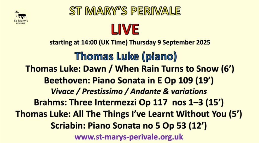 Thomas Luke is not only a pianist but also an accomplished composer, and what shines through all his work is the absolute clarity of his intelligent musicianship. I first heard him eighteen months ago in the final round of the Chappell Gold Medal at the RCM which was being judged by the ever eclectic Jed Distler. We had both noticed the clarity of his playing as I had when he played the Saint Saens second concerto in Lang Lang’s masterclass a year earlier. Young winner of the BBC Competition he has now acquired an authority from working over these past two years with Alim Beisembayev and Vanessa Latarche. We now see a young man who knows what he wants to say and has the means to express it, not only in music but also in words.