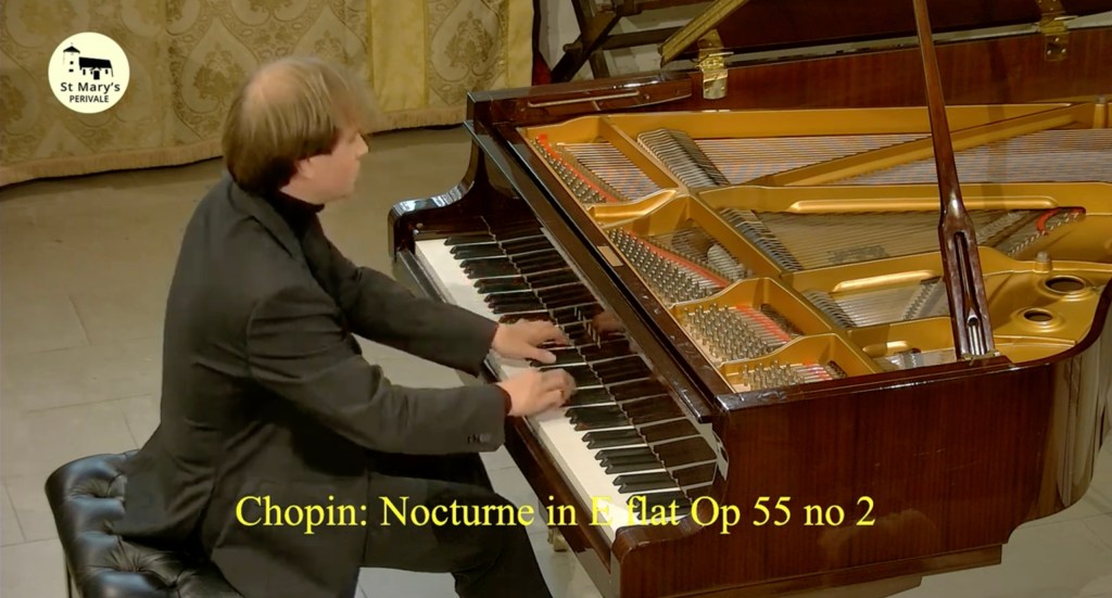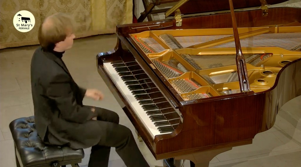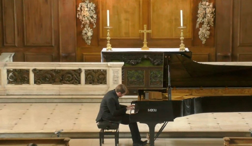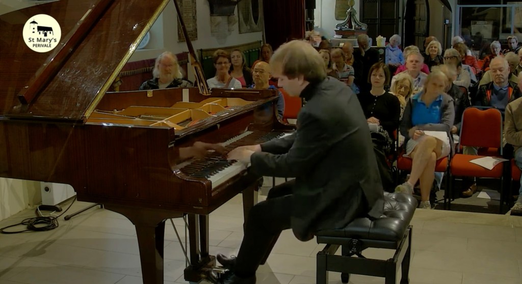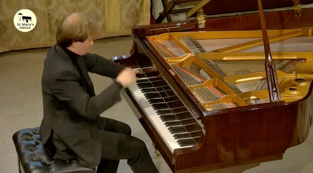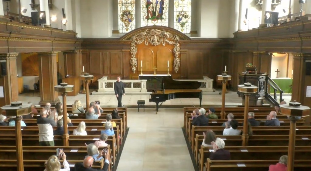 The crowning glory must go to Liszt’s monumental Norma Fantasy played with fearless abandon and breathtaking beauty. The wonderful thing about actually being in this beautiful church is for the acoustic where usually notey briliiance is transformed into streams of wonderful sounds . Here was a whole orchestra for Liszt’s operatic fantasy and a refined tonal palette for Clementi. Heartrending beauty for the initimate dream world of Eusebius and the impish good humour of Florestan.