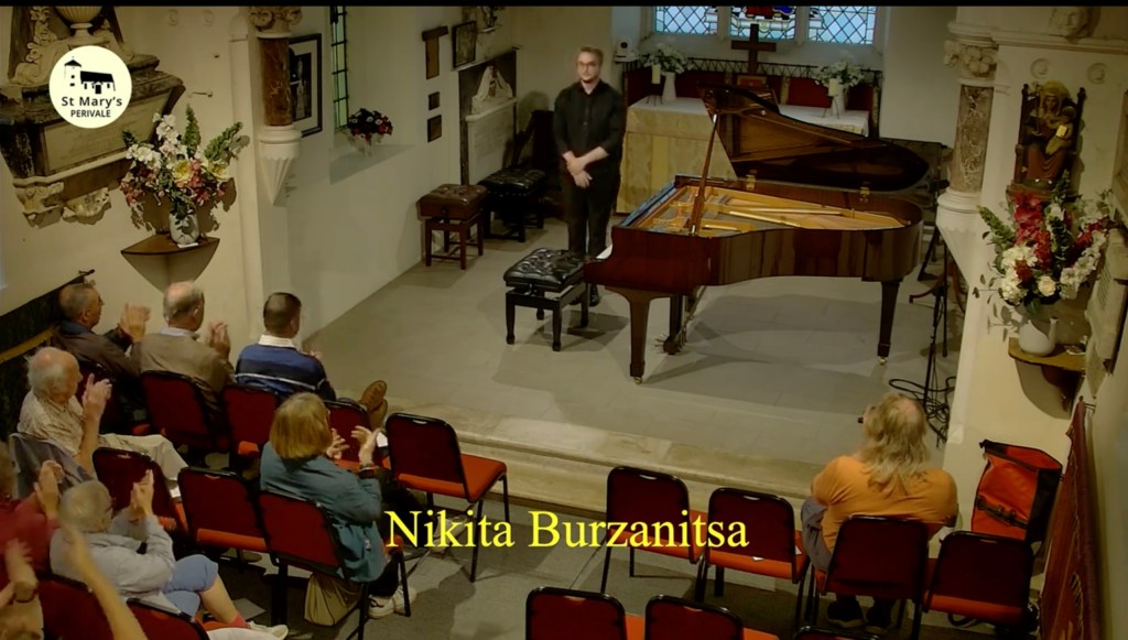It was ,though, Prokofiev that truly ignited Nikita’s imagination with a performance of striking contrasts and a kaleidoscope of colour and driving brilliance . The first movement was certainly ‘Inquieto’ with the jagged rhythms and pounding chords contrasting with the beauty of the Andantino. A slow movement that was indeed ‘Caloroso ‘with playing of great beauty and almost improvised freedom with its brooding repetitive menacing murmurs before the consoling beauty of the return of the main melody. The ‘Precipitato’ just shot from Nikita’s fingers with astonishing control .Never allowing the tension to sag and with ‘marcato’ injections of horror thrown in on a terrifying journey that explodes in the final bars and which Nikita played with fearless abandon .