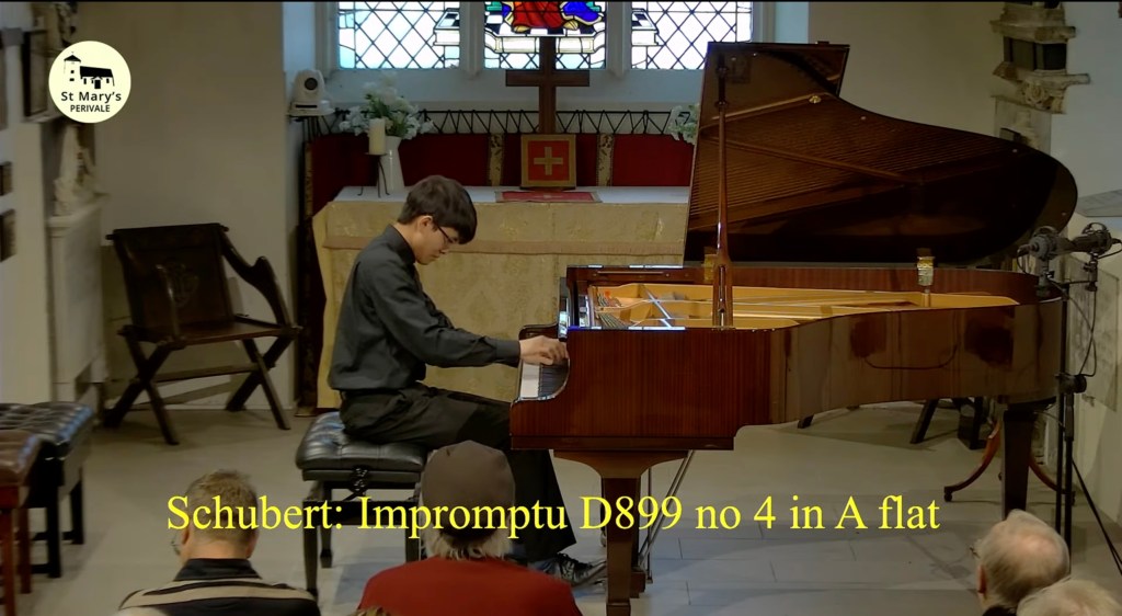 Schubert too was played with crystalline clarity but with a very expressive melodic line always beautifully phrased .There was a remarkable sense of balance as the passionate central episode was allowed to unfold with simplicity and deeply felt expression.