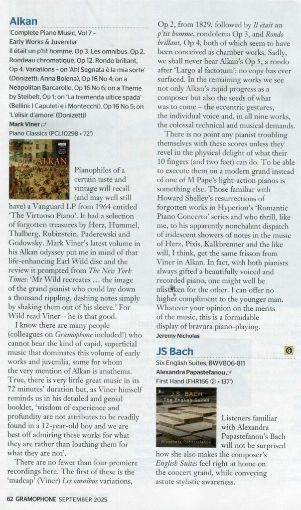 He is particularly renowned for his CD recordings on the Piano Classics label which include music by Alkan, Blumenfeld, Chaminade, Liszt and Thalberg, all of which have garnered exceptional international critical acclaim. His most important project to date is a survey of the complete piano music of Alkan: the first of its kind and which is expected to run to some 18 CDs in length. Aside from a busy schedule of concerts and teaching, he is also a published composer and writer and his advocacy for the music of Alkan led to his election as Chairman the Alkan Society 2014.
