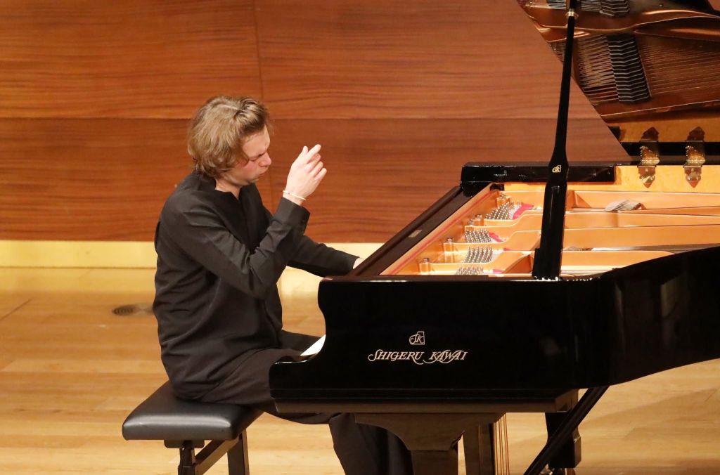 Chopin’s Sonatas have often been criticised as a series of episodes rather than one whole of architectural shape. Mikhail, as with the Beethoven, managed to combine his stylistic fantasy never forgetting the overall shape which gave great strength to the outer movements. Chords were played where the upper notes were allowed to sing in a movement where under Mikhail’s sensitive hands there was a radiance and beauty to all he played. A second subject that was of improvised freedom but always moving forward where even in the development there was a palette of sounds that could create such mellifluous beauty even to strands of meandering counterpoints. The ‘Scherzo’ was played with a jeux perlé that were streams of undulating sounds played with fleeting masterly radiance. The ‘Trio’ was allowed to sing with a languid beauty where counterpoints were allowed to weave their way with great freedom and a beguiling sense of colour. After the scintillating return of the ‘Scherzo’ the final chords were immediately picked up by the imperious opening to the ‘Largo.’ A bel canto played with great flexibility and freedom as the changing harmonies of the central episode were played with flowing beauty. The opening agitato of the ‘Finale’ was played with whispered menace as it gradually took flight with outburst of scintillating brilliance. A ‘tour de force’ of control and mastery with the rondò theme returning ever more intensely until the final explosion of the coda played with brilliance and mastery. Another remarkable performance of a work that can sound very fragmented in lesser hands but that Mikhail could see the architectural shape of a tightly constructed masterwork.