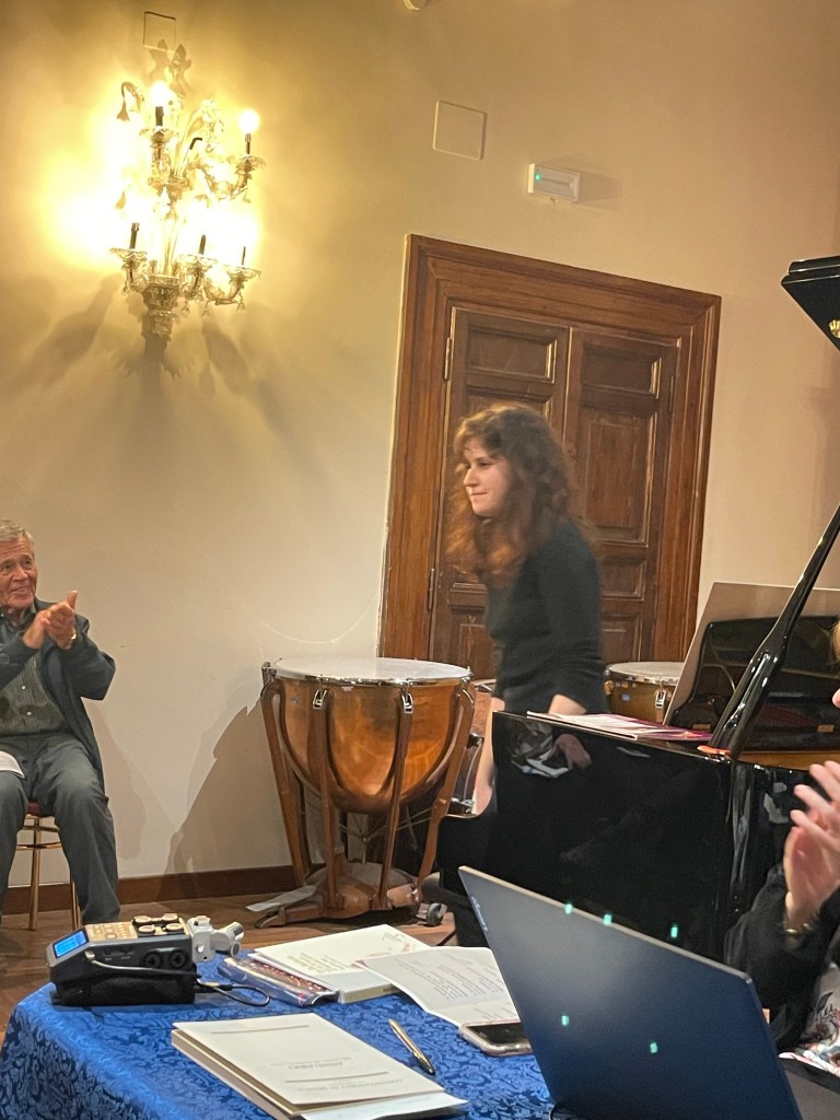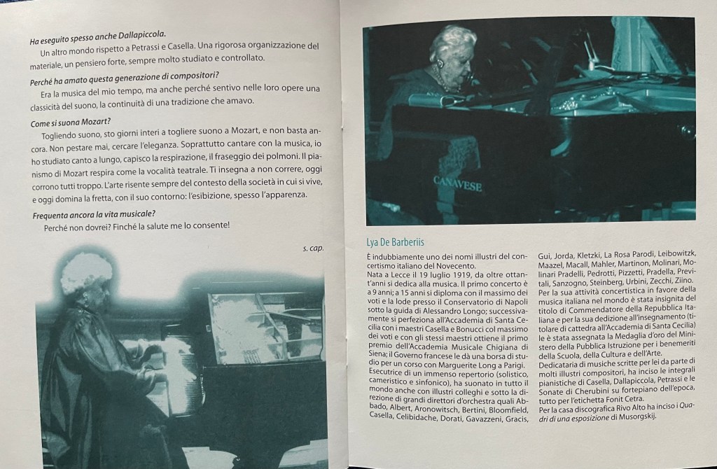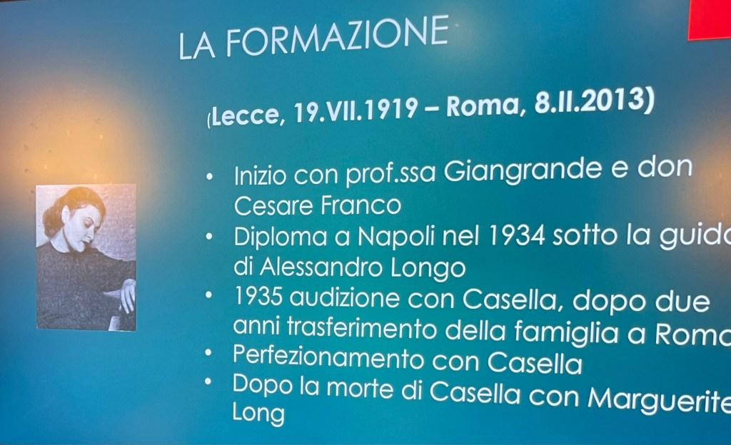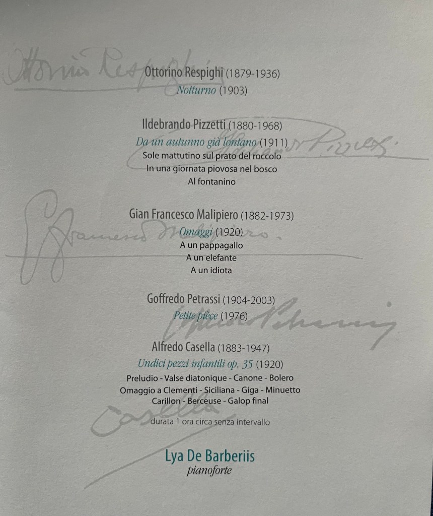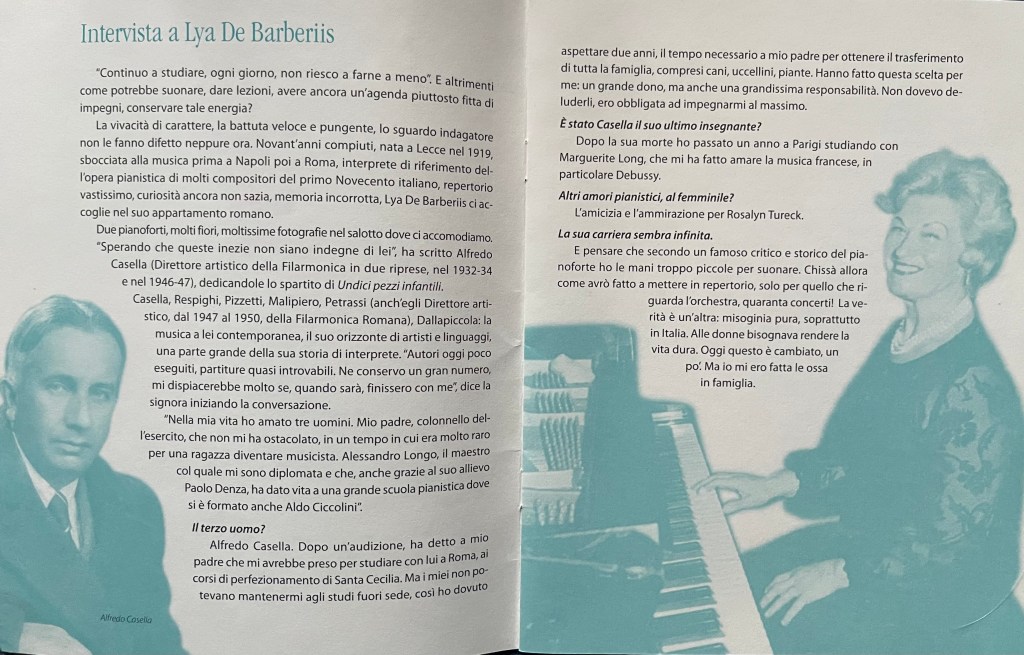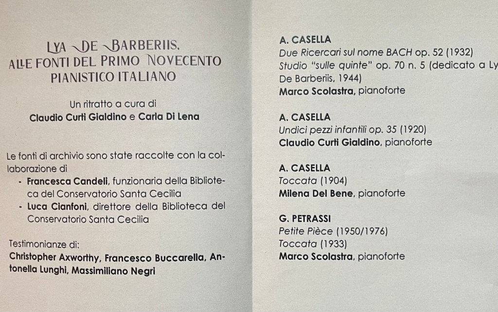 Claudio Curti Gialdini had studied with Lya since his early teens and is now a Professor at the S. Cecilia Conservatory and he too played with chiselled beauty and authority the Eleven Children’s pieces op 35 by Casella. His student Milena Del Bene played the Casella Toccata and one could appreciate the same discipline handed down to her from her teacher and the school of De Barberiis