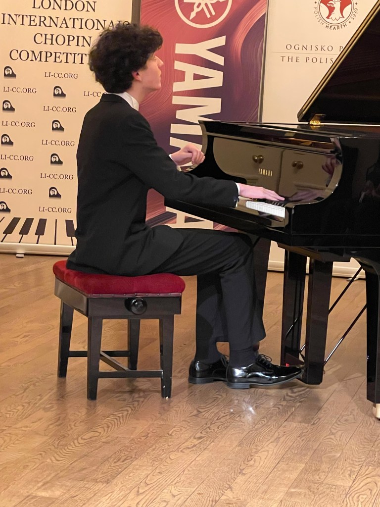 Category C , the winner was Julian Zhu , a revelation, as this young English born Chinese student at Chethams, revealed a natural talent that cannot be taught. Breaking all the rules, but creating his own as he had the gift of listening to himself and creating music with quite considerable artistry. The Andante Spianato immediately revealed a wonderful arch to his left hand as flat fingers chiselled out Chopin’s youthful bel canto with the freedom that Chopin himself described to his pupils of a tree firmly planted in the ground but with the branches free to move naturally above. A Grande Polonaise that was truly ‘Grand’. Note picking accuracy is not for him, as he needed to communicate what he found within the notes, the external details which were pretty good, will be easy to perfect as he matures and his playing gains in weight.