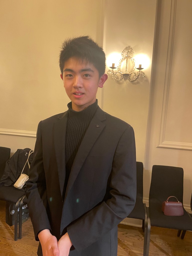 Category A, was won by Eileen Zhang who showed a remarkable natural talent of fluidity and quite considerable weight in the central melodic episode. She seemed to enjoy allowing her fingers to fly over the keys like swimming in sounds with horizontal movements allowing her agile fingers to shape the music with extraordinary facility . If she got impatient with the long expansive bel canto it was because she is a live wire who could not wait to allow her fingers full reign again.