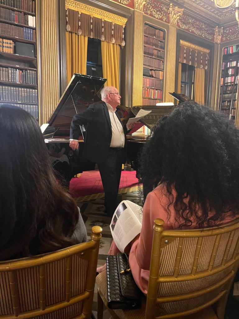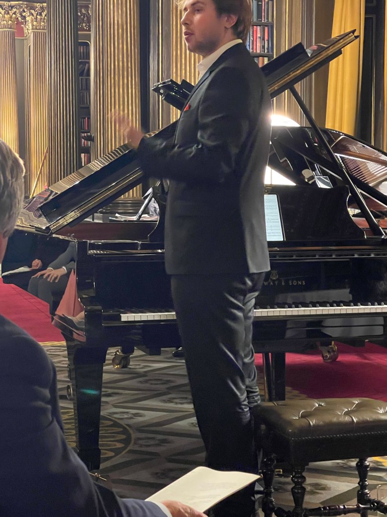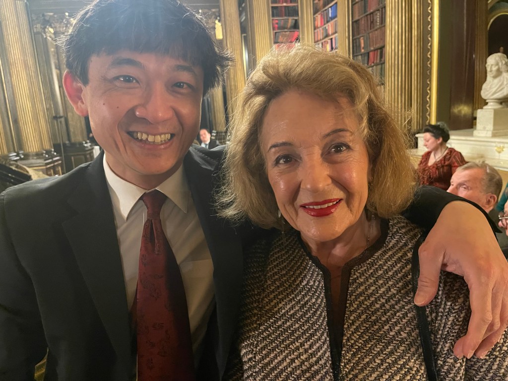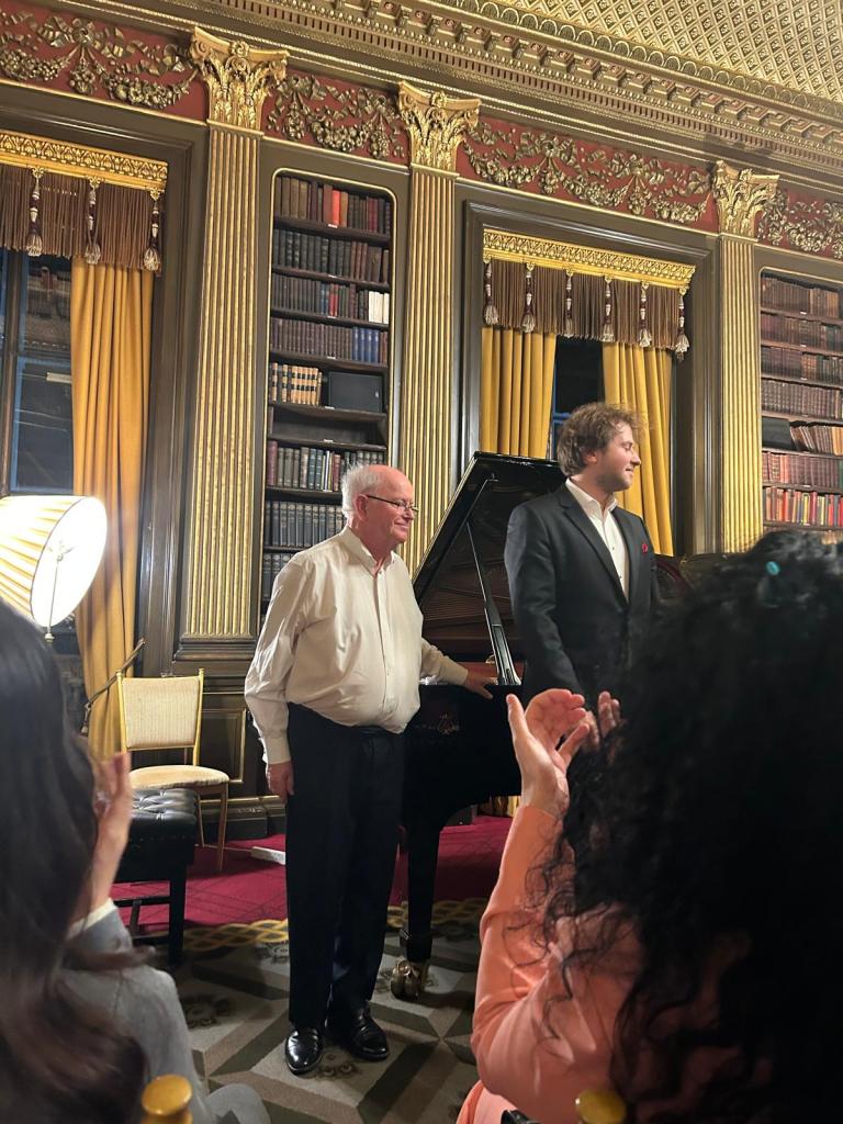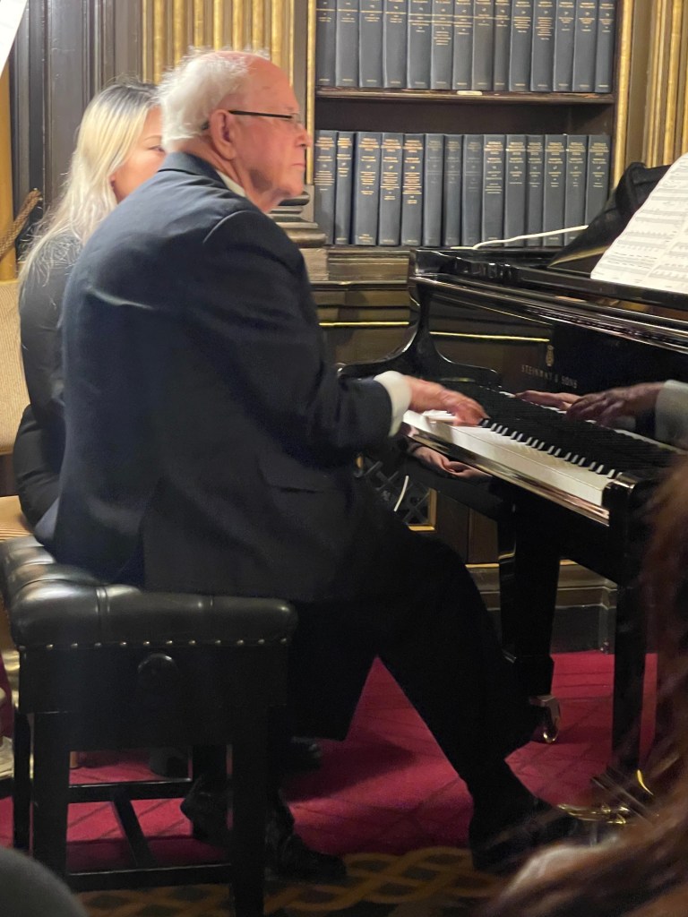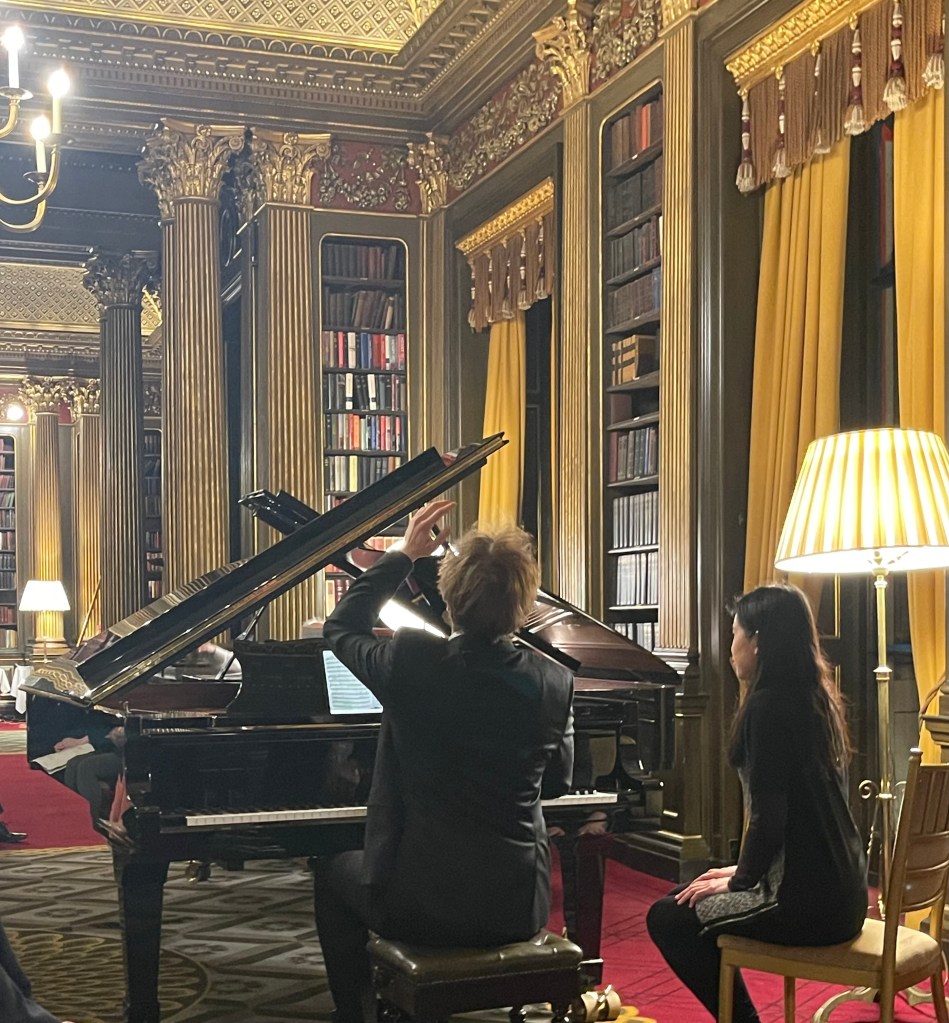 Today he could let his hair down with scintillating performance for two pianos of Saint- Saëns, Shostakovich, Mussorgsky and ending with Tchaikowsky’s ‘Nutcracker’. Enticed into playing less serious fare by Michael Corby ,at the helm of two magnificent Steinway ‘D’ pianos that stand proudly in the ‘Golden’ library at the Reform Club.