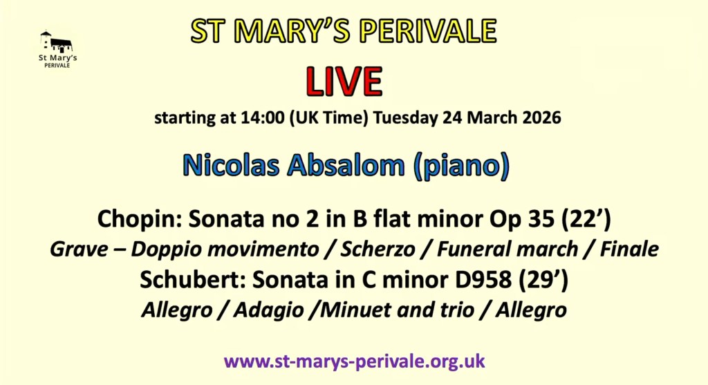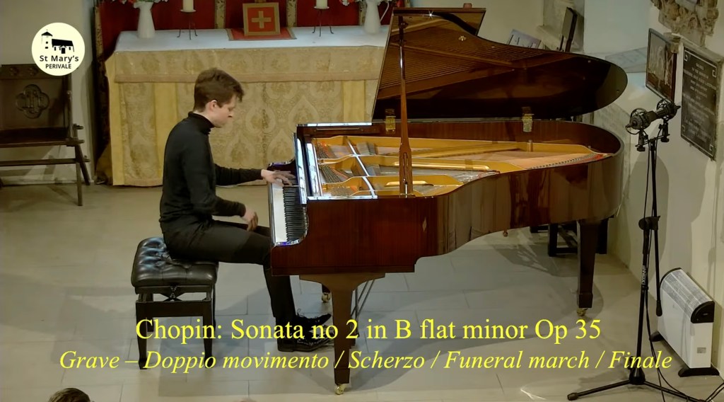 The Chopin Sonata is a masterpiece of construction of great originality, so much so that Schumann even described it as ‘four of Chopin’s maddest children all under the same roof’ , and went on the describe the last movement that ‘seems more like a mockery than any sort of music’. When Mendelssohn was asked for an opinion , he commented, “Oh, I abhor it”. Nicolas played it today very simply with great clarity, keeping the same tempo throughout the first movement that gave it an architectural strength , as the bass introduction is used in the development with masterly effect. There is always a question of whether one should repeat the exposition of the sonata , and if so where to? Nicolas decided ,as many great musician do, to ignore the repeat in favour of going straight into the development. Playing of dynamic drive and extraordinary clarity due to his very careful use of the sustaining pedal. Playing with a kaleidoscope of sounds but if he allowed his hands to delve even deeper into the keys with limpet like adhesion it would add even more warmth and sumptuous richness. Finding an even truer finger legato, like an organist, always with the same very careful use of the pedal. But this was very musicianly playing and the second subject was played with disarming beauty of great sentiment but never sentimentality. The ‘Scherzo’ was played unusually gracefully as it had a real sense of dance rather than the solidity of a study in lesser hands. The Trio was played with rare beauty and Nicolas’s ability to allow the left hand counterpoints to sing with clarity added another dimension of contrast to this beautiful bel canto. The whispered coda with just two whispered chords in the left hand over a long held chord allowed us to appreciate the relentless beauty of the ‘Funeral March’ that was on the horizon. As Nicolas explained in his introduction, the ‘Funeral March’ was composer first, and the rest of the Sonata was constructed with many of the same bricks as this remarkable movement. Even here Schumann could not appreciate the originality of Chopin’s genius, remarking that the Marche funèbre ‘has something repulsive about it’ , and that ‘an adagio in its place, perhaps in D-flat, would have had a far more beautiful effect’. Nicolas played it with fervent conviction where delving deeper into the keys would have added even more weight to his beautiful playing. The Trio, actually in D flat, was played with just the beauty that Schumann had missed. Nicolas played it with remarkable control and aristocratic good taste with a refined beauty that made the return of the march even more harrowing. Nicolas brought absolute clarity to the whirlwind of notes of the ‘Finale’ where maybe a little more pedal would have given an undulating shape to this extraordinary ‘wind passing over the graves’. A performance by a mature musician untainted by the so called ‘tradition’ as he showed us Chopin’s often criticised mastery of architectural construction that lives hand in hand with the poetic beauty of a genius.