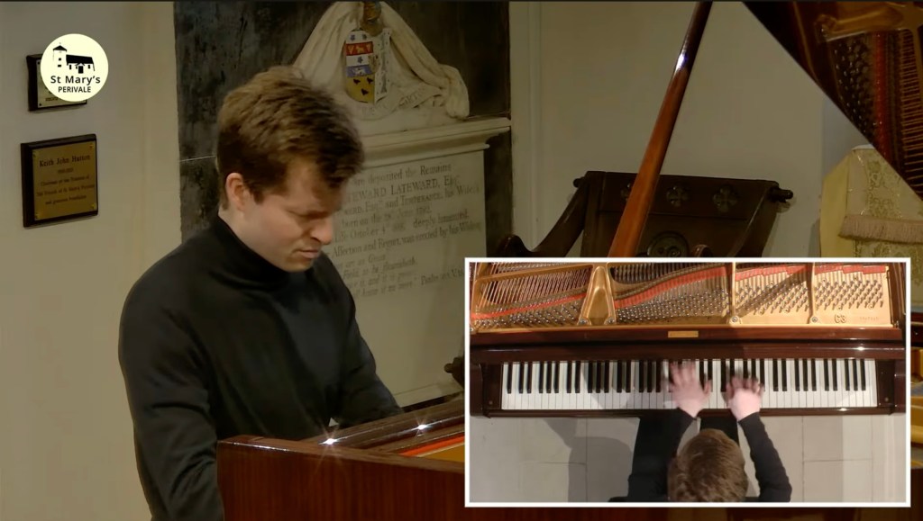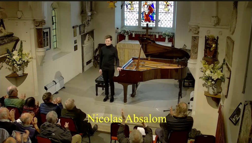 I have heard Nicolas play over a number of years in the annual masterclasses of Alberto Portugheis at Steinway Hall in London.Also for the Thomas Harris International Foundation competition founded by the much missed Judy Harris in memory of her son. Re reading my impressions then and now it was always the absolute clarity of Nicolas’s playing that was so remarkable. He has now matured over the past six years playing with ever more intelligence and technical maturity without loosing the clarity and beauty of his playing . Two major works on the programme showing immediately the credentials of a musician of ‘class’ to quote Dr Mather today. To sustain two such important works one after the other is a challenge to any musician, because the concentration and contemplation go hand in hand with memory and technical preparation. There was hardly a note out of place today because Nicolas is a musician who listens to himself and is so absorbed in the music that there are never any moments of distraction or unnecessary bravado.