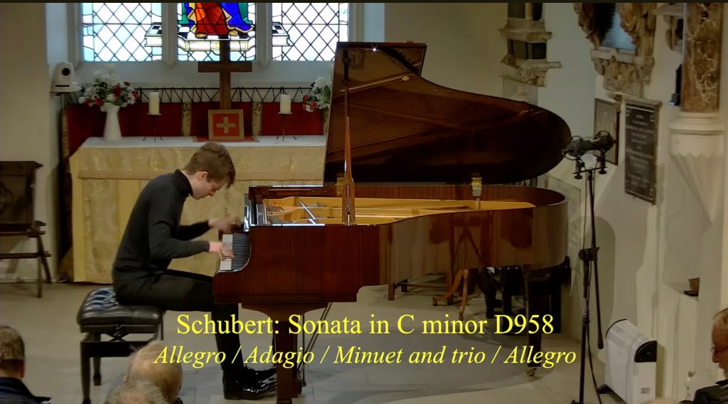 The Sonata in C minor is the first of Schubert’s final trilogy written in the last year of his short life. It is the most Beethovenian and choosing the key of C minor is also a declaration of dramatic intent and intensity. It has long been the Sonata favoured by great Russian virtuosi and it was Richter who was to astonish us with his performances in the 70’s of a Schubert of so many conflicting emotions. I remember the last movement, who could ever forget, Richter creating a whirlwind of breathtaking dynamism after an ‘Adagio’ of poignant penetration and an opening ‘Allegro’ like Beethoven’s 5th. Nicolas’s was not a performance of extremes, but a musicianly account of what he described as his favourite work. It was played with scrupulous attention to the composers indications and with dynamic drive and poignant poetic beauty. Again choosing not to repeat the exposition he entered the development where Schubert mixes a mystery of dark beauty of disturbing character. The chilling beauty of the left hand murmuring with whispered menace only to be replied by a bel canto of radiant beauty. Chromatic scales starting as a whisper and building into a massive crescendo, beautifully judged by Nicolas as the opening declaration was heard again with even more energy. He brought a poignant beauty to the ‘Adagio’ with a beautifully chiselled melodic line as it built in intensity of orchestral colouring only to reveal a coda of whispered significance.The Minuetto that follows was played with simplicity and buoyancy with a playful character that was the bridge between two movements of such conflicting emotions . The ‘Allegro’ was brilliantly played with a relentless drive until the cloud passes and one of those miraculous melodies of Schubert is suddenly revealed in a blaze of light and which Nicolas played with radiance and loving beauty. Of course there is no stopping this cauldron that is always in the background waiting to erupt and which Nicolas played with dynamic drive a brilliance. Another masterly account from a musician of ‘class’.