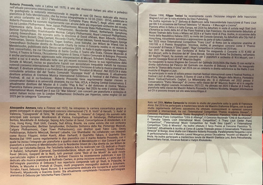 This is the second edition of this season, dedicated to Italian piano music in all 20 concerts, which are distributed in different Italian cities and regions throughout 2026.