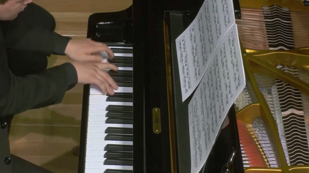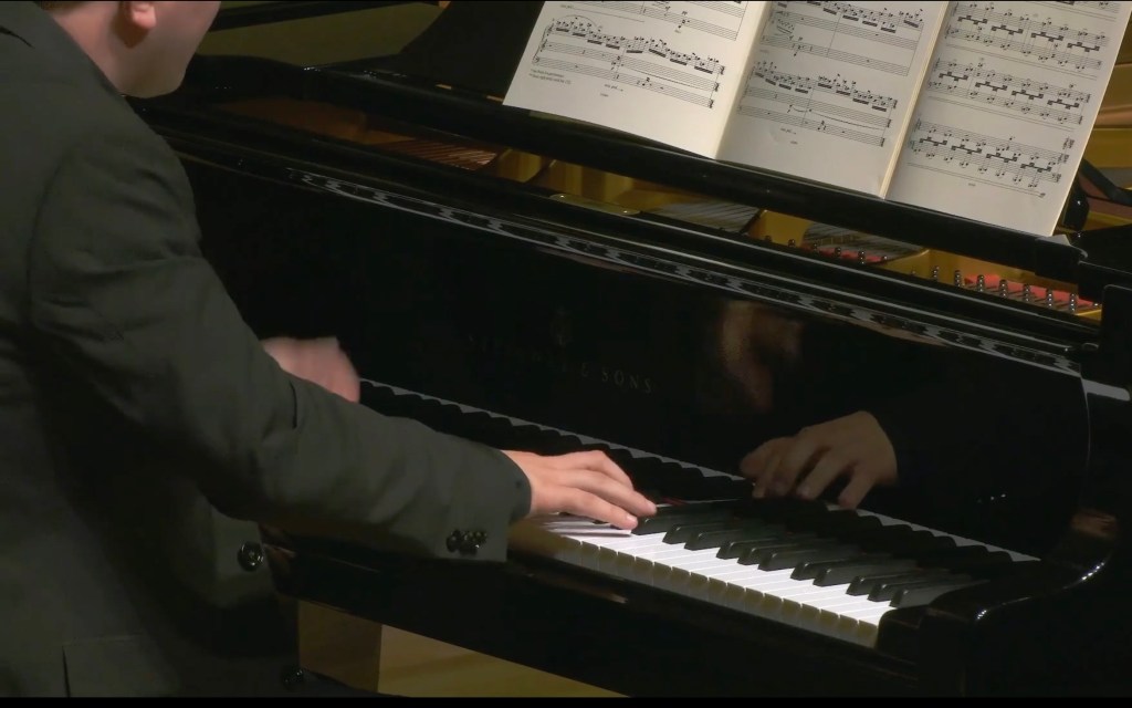 Beat Furrer’s Studie IV was composed for Gorini’s residency in Hong Kong. It’s a work that makes considerable technical demands on the performer, switching between a variety of textural patterns with scarcely a break in the texture, rather like a pianistic workout routine.