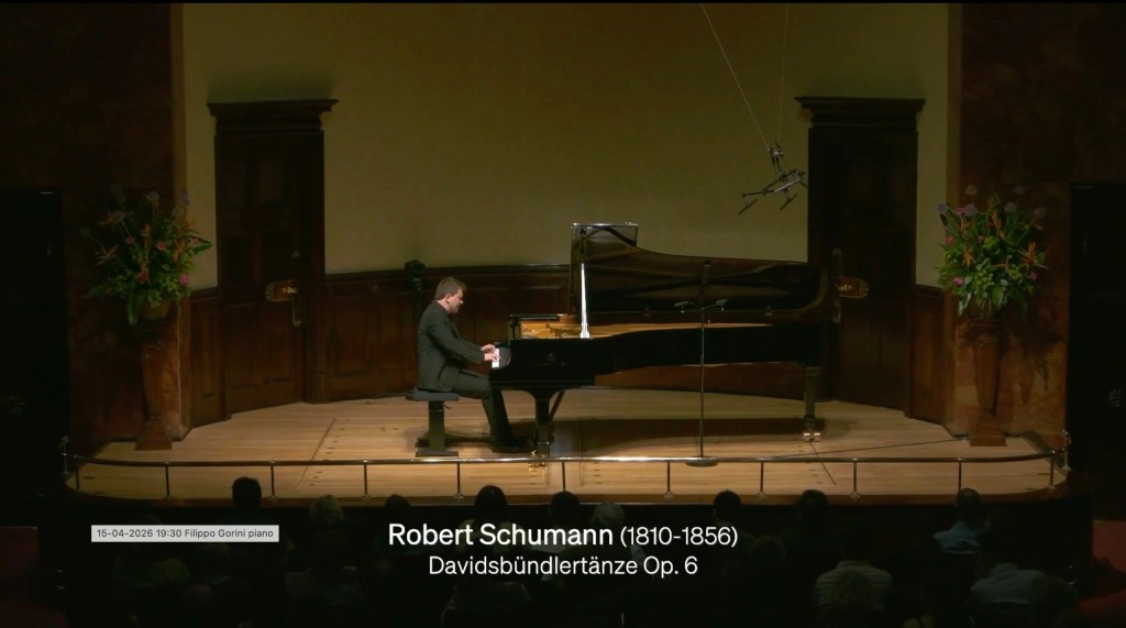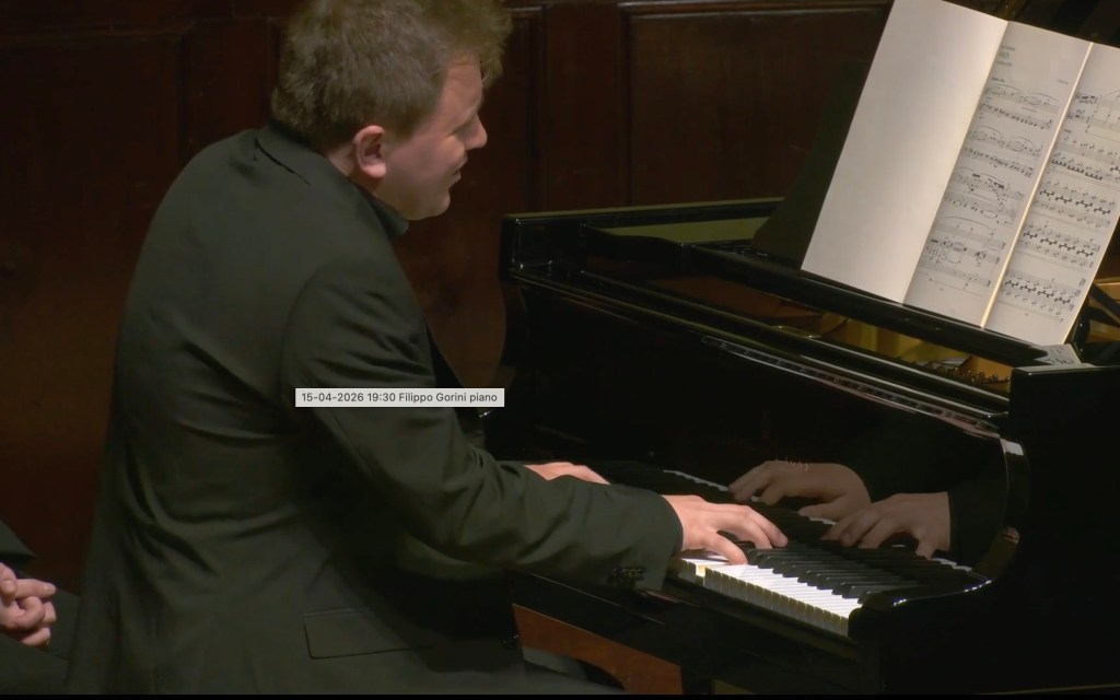 I have been following Fillipo’s performances for some time, from the Art of Fugue filmed live in Turin to the Diabelli variations that he explained and played in London, invited by his colleague and friend,Raffaello Morales, to play at his Fidelio Café. Filippo, mentored by Brendel, is one of the few artists that you can trust and that regularly have me rushing to take another deeper look at the score. They are artists who can unlock secrets that are only revealed to those that with total dedication and mastery can unravel the mysteries left by the composers. It is a voyage of discovery together, where performance becomes recreation. This is what we experienced from Filippo Gorini today.