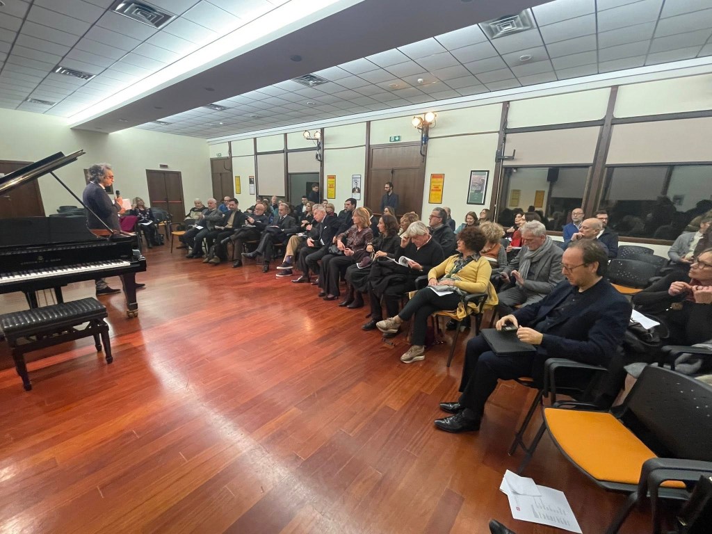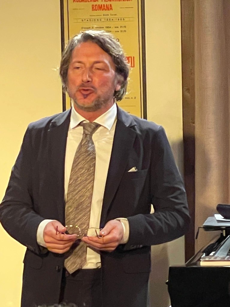 Domenico Turi,Artistic director of the Filarmonica Romana presenting the evening in the Sala Casella generously offered for the presentation of the book dedicated to Sergio Cafaro.