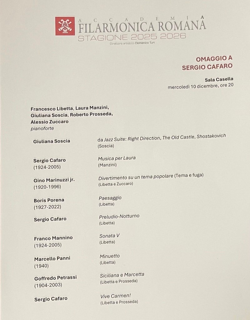 Premio Pianistico Sergio Cafaro Accademia Nazionale di Santa Cecilia Luca Ciammarughi Naturalmente Pianoforte Pianoforte PianoTeam Italia Concours de Genève FAZIOLI法吉歐利鋼琴中心 Teatro dell’Opera di Roma Auditorium Parco della Musica Ennio Morricone.