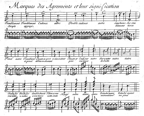 The complete table of ornaments from d’Anglebert’s Pièces de clavecin.