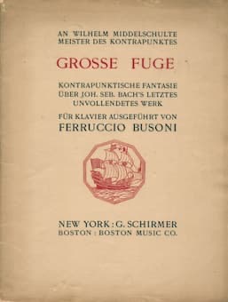 In March 1910, Busoni completed his “Grosse Fuge,” which he described as “the most corseted of his compositions.” He writes to his wife, “Every note is spot on! Today is the first of March. I had planned to finish this monster fugue in February and I succeeded, but I won’t do it again!” Bach’s original fugue is built on three themes, but at the start of the third theme the manuscript is interrupted, and within its development, a fourth theme is introduced. Busoni identifies this fourth theme as the basic motif of the whole cycle. However, Busoni is not yet satisfied, and he created a fifth theme, which acts as a conclusion. Busoni assures his wife that he had been “working in the spirit of Bach,” but in the end he does not limit himself to these five fugues, “but further develops the piece through the addition of several other movements, so as to achieve, as he affirms, “the form of a grand fantasia.”Busoni prefaces his “Grosse Fuge” with his own variations on the Bach chorale “Allein Gott in der Höh sei er,” composed three years earlier. Breitkopf & Härtel explain the overall form of the work at the beginning of the published score: An “Introduzione” based on Bach’s chorale (Maestoso deciso, Allegro, Andantino) leads to the first three fugues on themes by Bach; an “Intermezzo,” which then leads to the “Variazioni” on the same fugues; then a cadenza leading into the fourth fugue. Before the final “Stretta” the Chorale reappears, with ‘dolcissimo’ chords in the high register of the keyboard.”