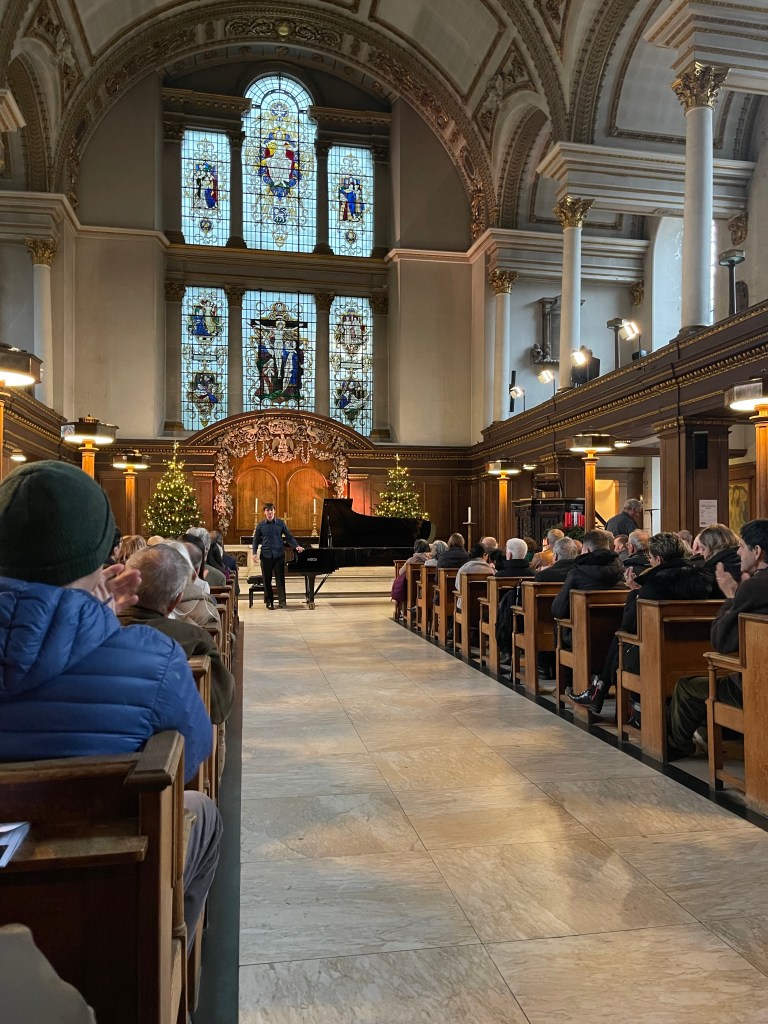 The indomitable Canan Maxton of talent Unlimited promoting so many young artists St James’s full for this lunchtime performance