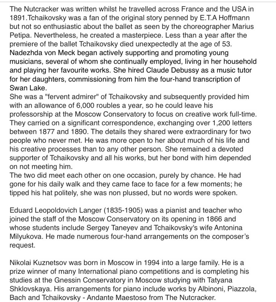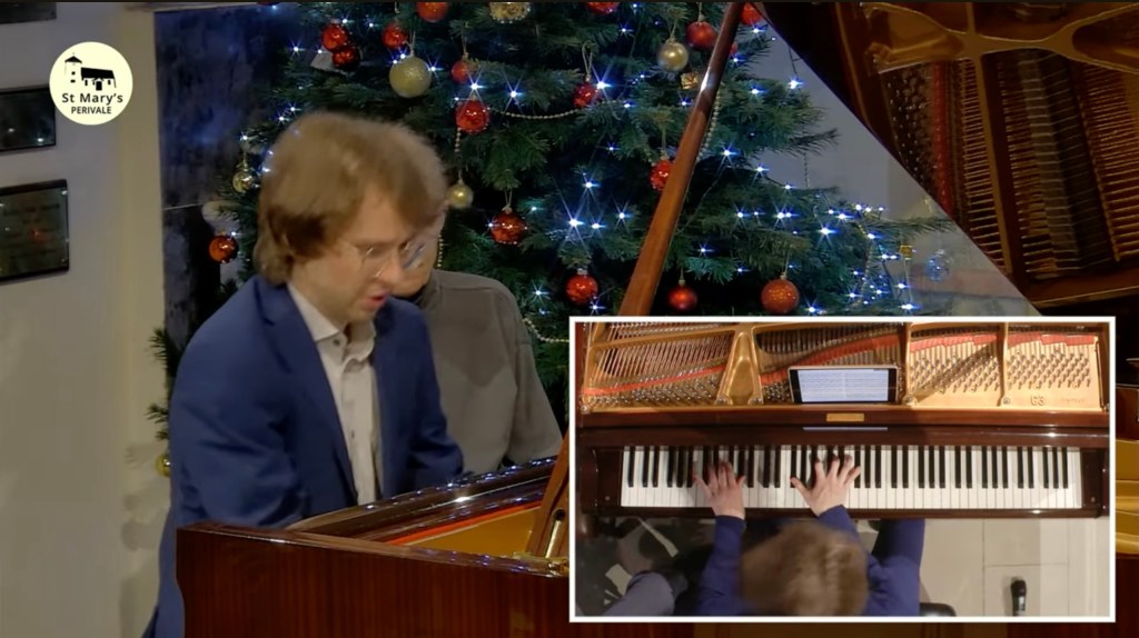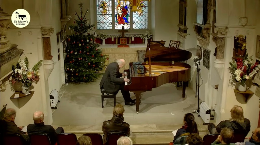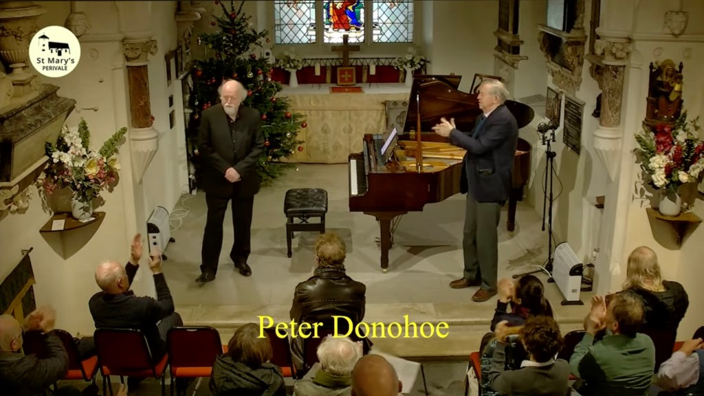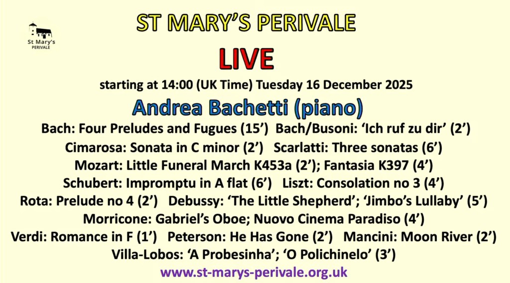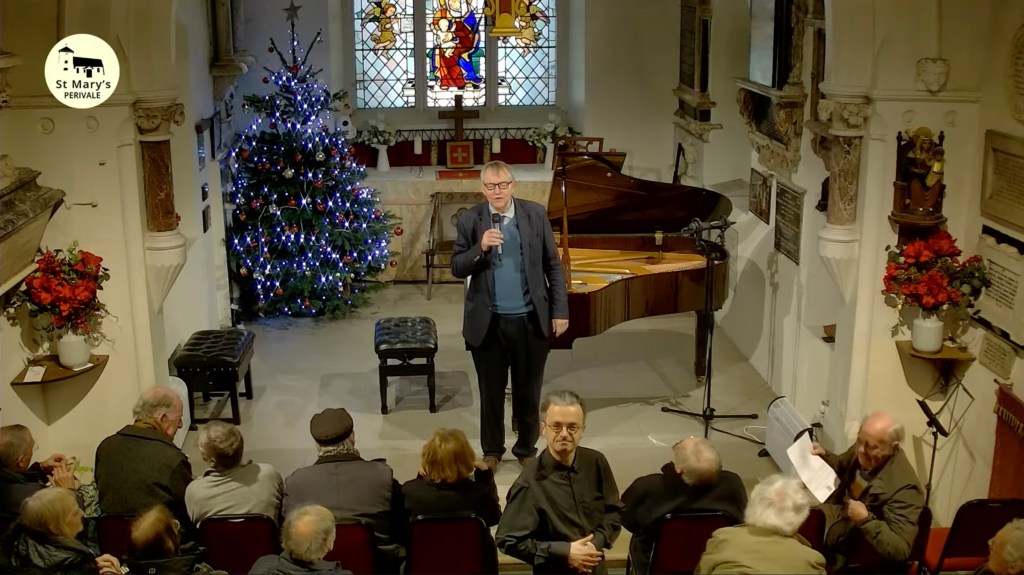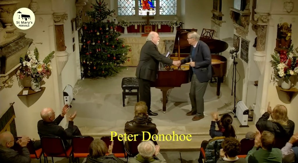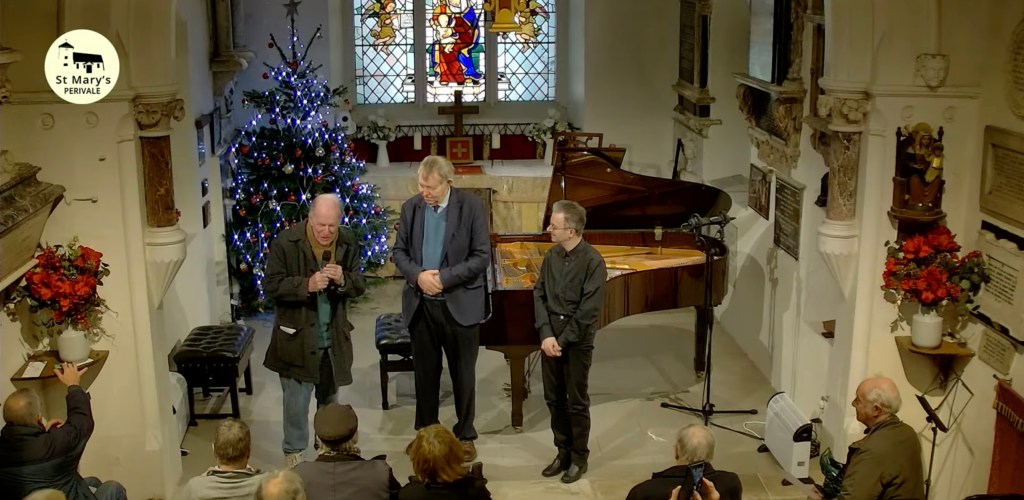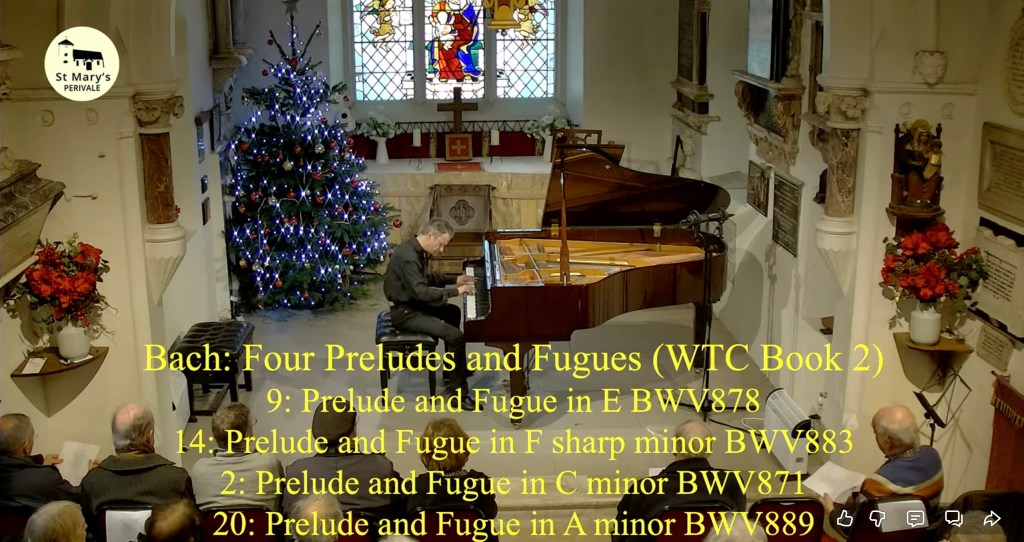 There had been a slight change of order so Verdi and Oscar Peterson remained without captions which had no importance when the playing was of such ravishing beauty . The Verdi we actually got to hear twice, as I asked Andrea if he would play it again at the end as an encore, together with one of the four of the preludes and fugues advertised but had realised he only played three at the beginning ! As Hugh said ‘who is counting when playing of such magnificence is unfolding on this cold winter’s day!’