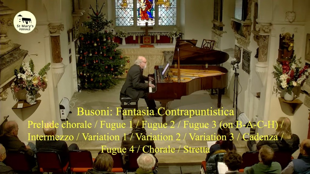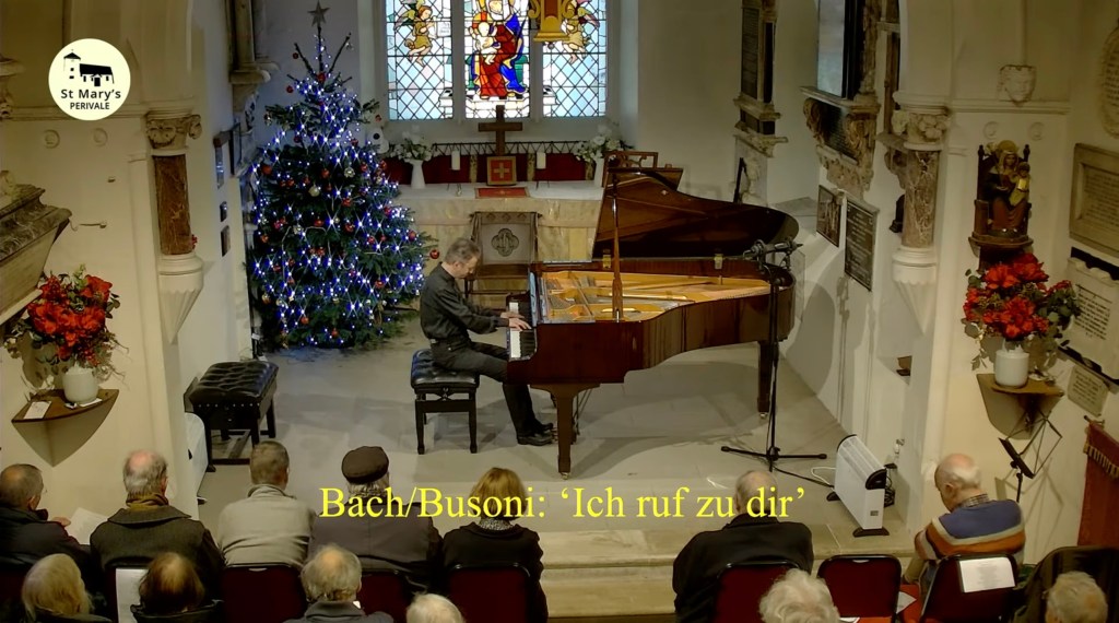 Even the Busoni transcription of ‘Ich ruf zu dir’ was played with shining beauty with a very dry bass accompaniment, very measured and unusually respectful for a work that is usually drowned in pedal. It lost nothing of its beauty as the bass sustained the melodic line with deep majestic sonorities. A remarkably original and ravishingly beautiful performance that in a way mirrors Busoni’s own playing,as much as we can discern from the piano roll recordings that he bequeathed to the world and that were housed by Frank Holland in the Brentford Piano Museum just a stones throw away.
