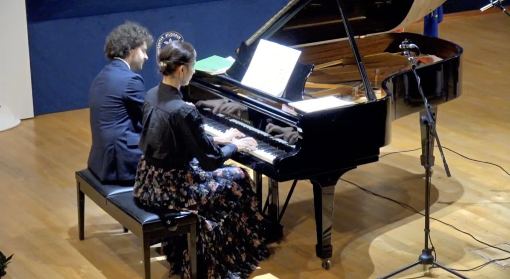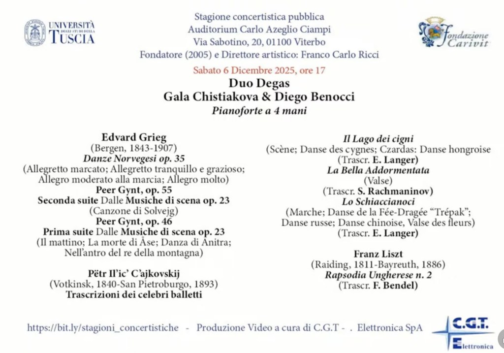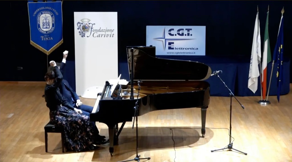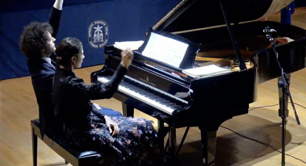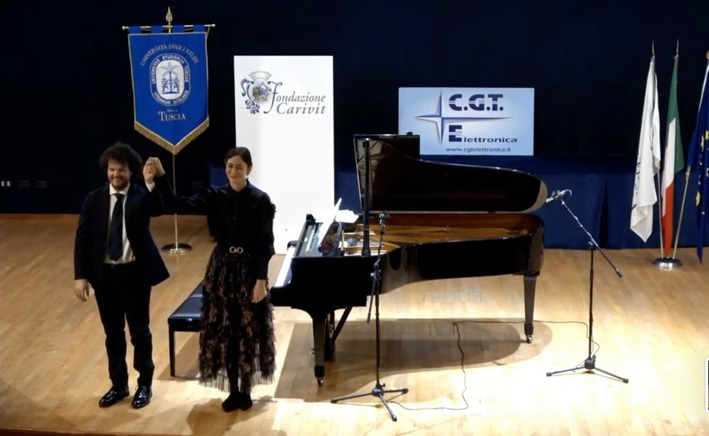 The third visit to Tuscia University of a duo that plays as one with a programme of favourite works by Grieg,Tchaikowsky and Liszt . A husband and wife team with a family of two children and a growing activity in their home town of Grosseto.