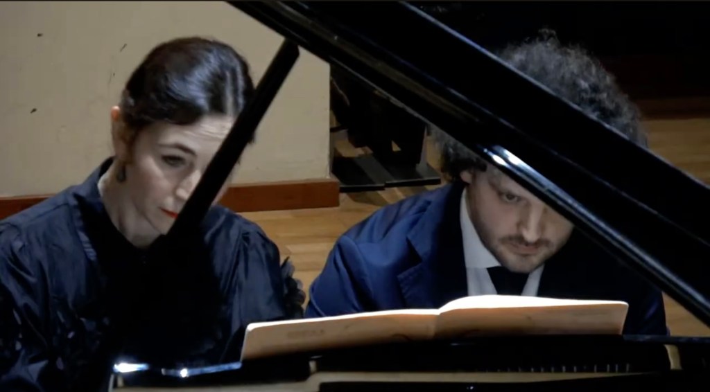 An opening with Grieg that from the very first notes of the Dances op 35 they showed their complete authority with an imposing opening of great rhythmic drive and urgency. Sumptuous rich sounds from the bass dissolving to a heartrending mellifluous outpouring of the innocent simplicity that was so much part of Grieg’s musical personality, bursting into the gleeful impish dance rhythms to end. A beguiling melody from Gala in the second dance was accompanied with insinuating rubato by Diego with an interruption of dynamic drive and exhilaration before the return of the opening haunting melody ever more teasingly beautiful. There was a capricious dance to the third played with a fleeting lightness and great sense of character as it built in intensity contrasting with the ravishing beauty of the central episode. A grandiose opening to the fourth with an almost too serious opening deep, in the bass, bursting into a rhythmic dance of question and answer between the players with a central episode of great intensity and beauty.
