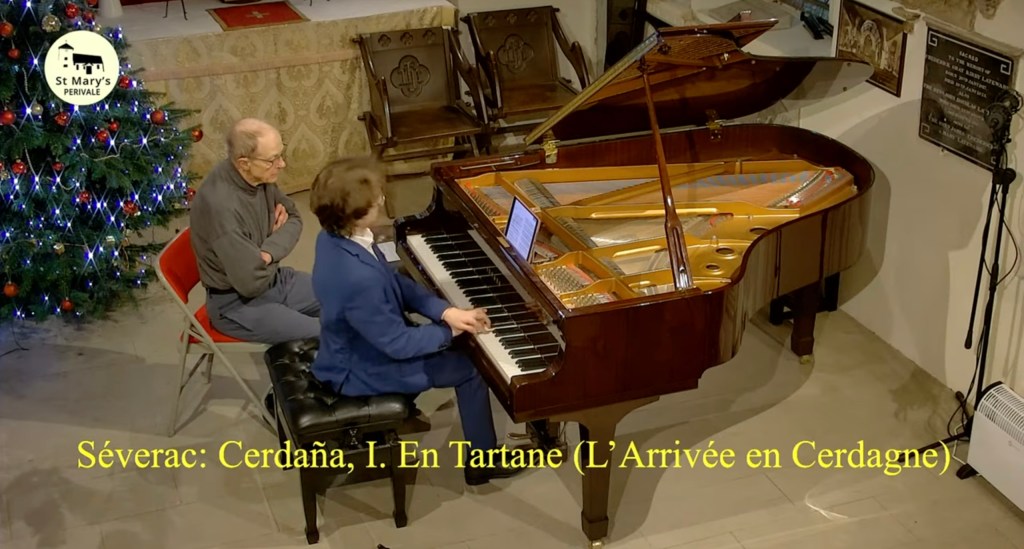 Séverac was described by Julian as the country bumpkin of French music and it was an apt description of a composer of great originality who could paint a simple picture in sound. In this piece it is the horse and cart arriving in Cerdagne.The Spanish part of France that is all light and brilliance where Julian’s playing was very descriptive, as we could almost see this horse and cart lazily making it’s way ahead.