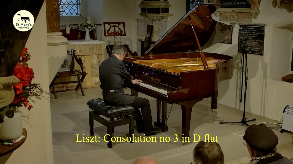 The Liszt consolation was bathed in pedal as the deep D flat sustained the glowing beauty of the chiselled melodic line of timeless refined elegance and nostalgic beauty.