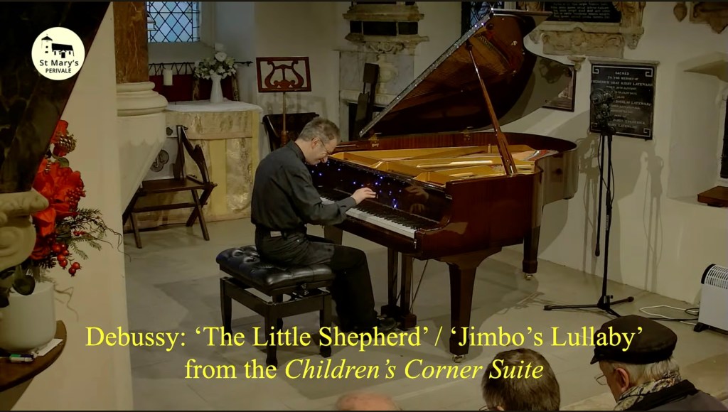 Debussy’s lonesome Little Shepherd was of haunting beauty as his single long lament rang out with beseeching luminosity. Greeted by the bass of Jumbo’s lullaby with haunting bells ringing out as he trespassed into unknown territory only to return more deeply into the woods with ever more decisive bass meanderings!